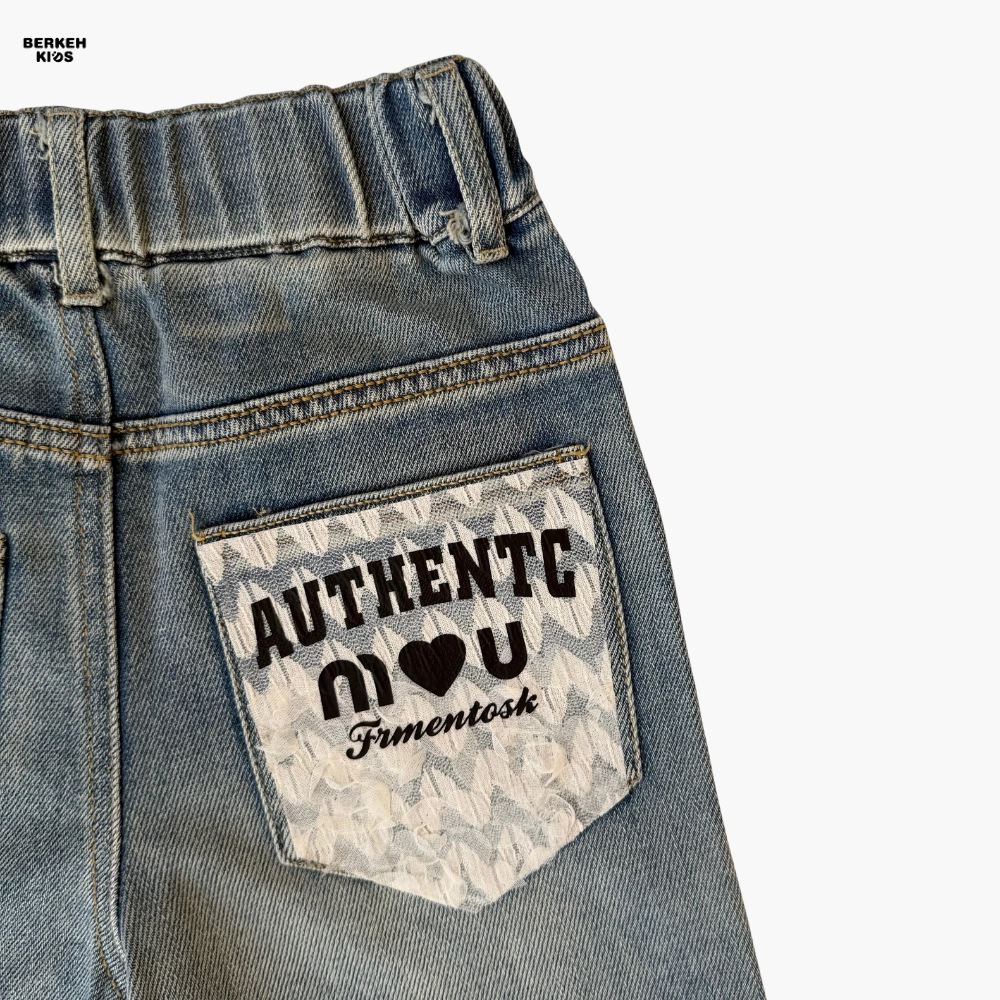 کمر کشی و دکمه تزئینی در قسمت جلو، علاوه بر زیبایی، پوشیدن شلوار را برای کودک بسیار آسان کرده است. جیبهای جلو و پشت با دوخت تمیز و برچسبهای فانتزی کوچک، ظاهر شاد و دخترانهای به آن دادهاند. طراحی نوشته AUTHENTIC در پشت شلوار، حس مدرن و اسپرتی به استایل کودک میدهد که برای استفاده روزمره، مدرسه یا گردشهای خانوادگی کاملاً مناسب است.