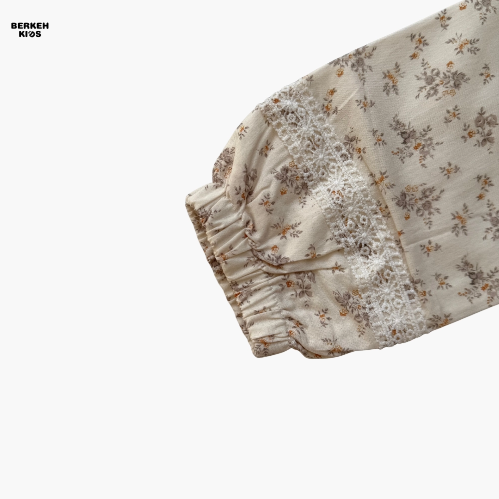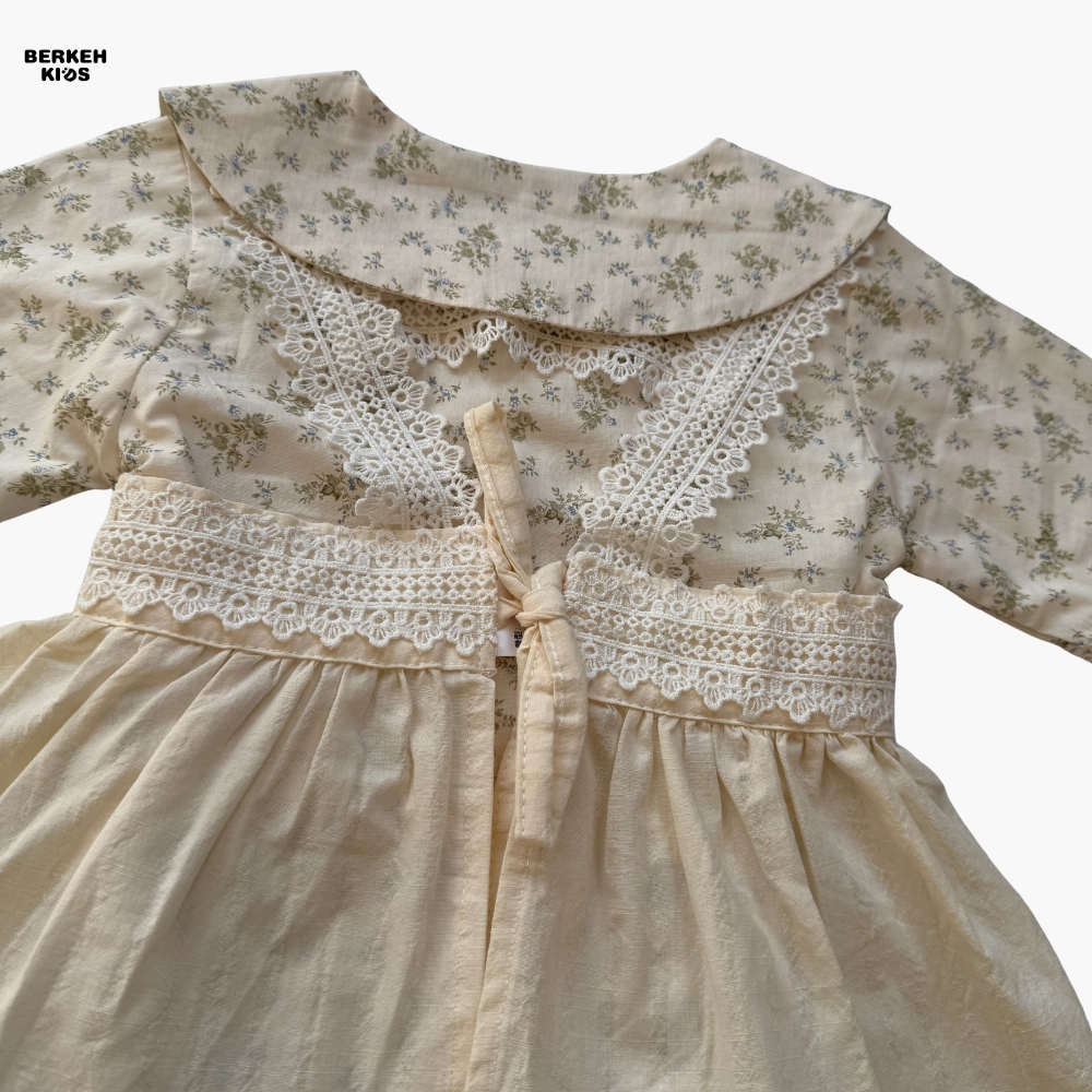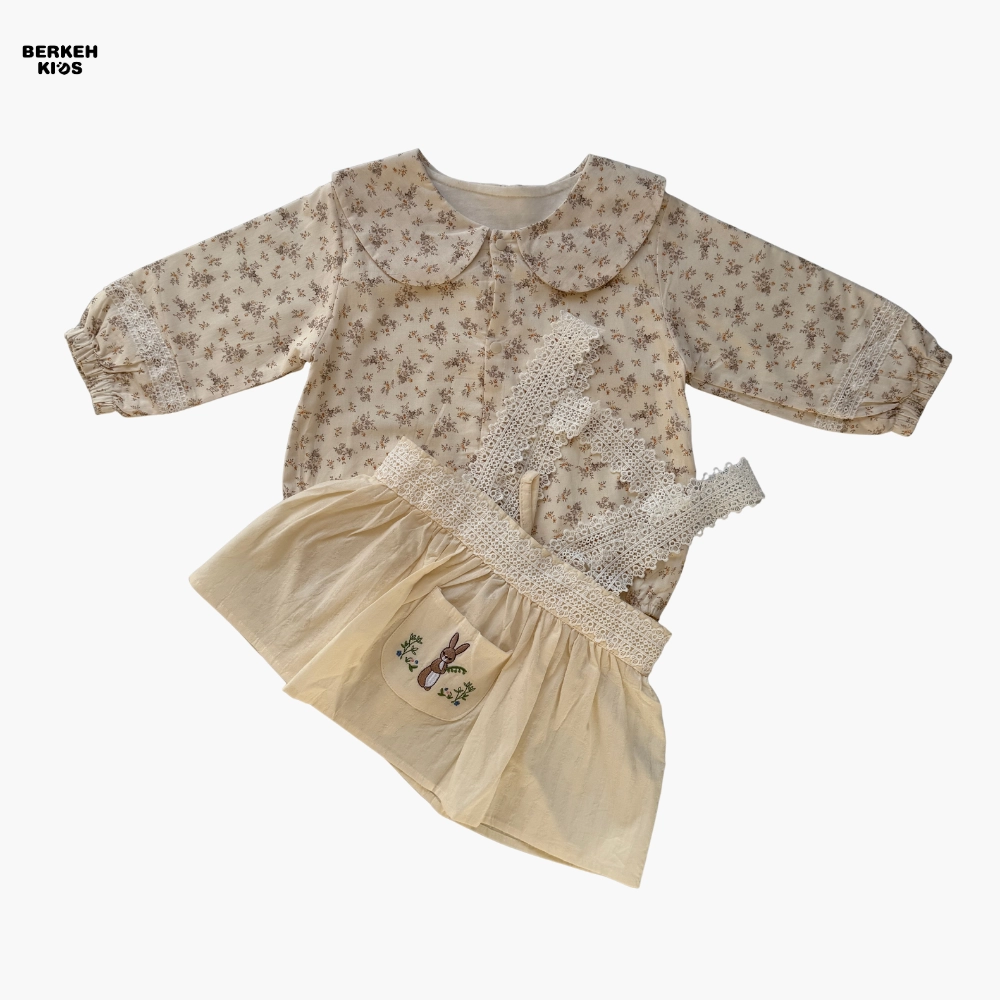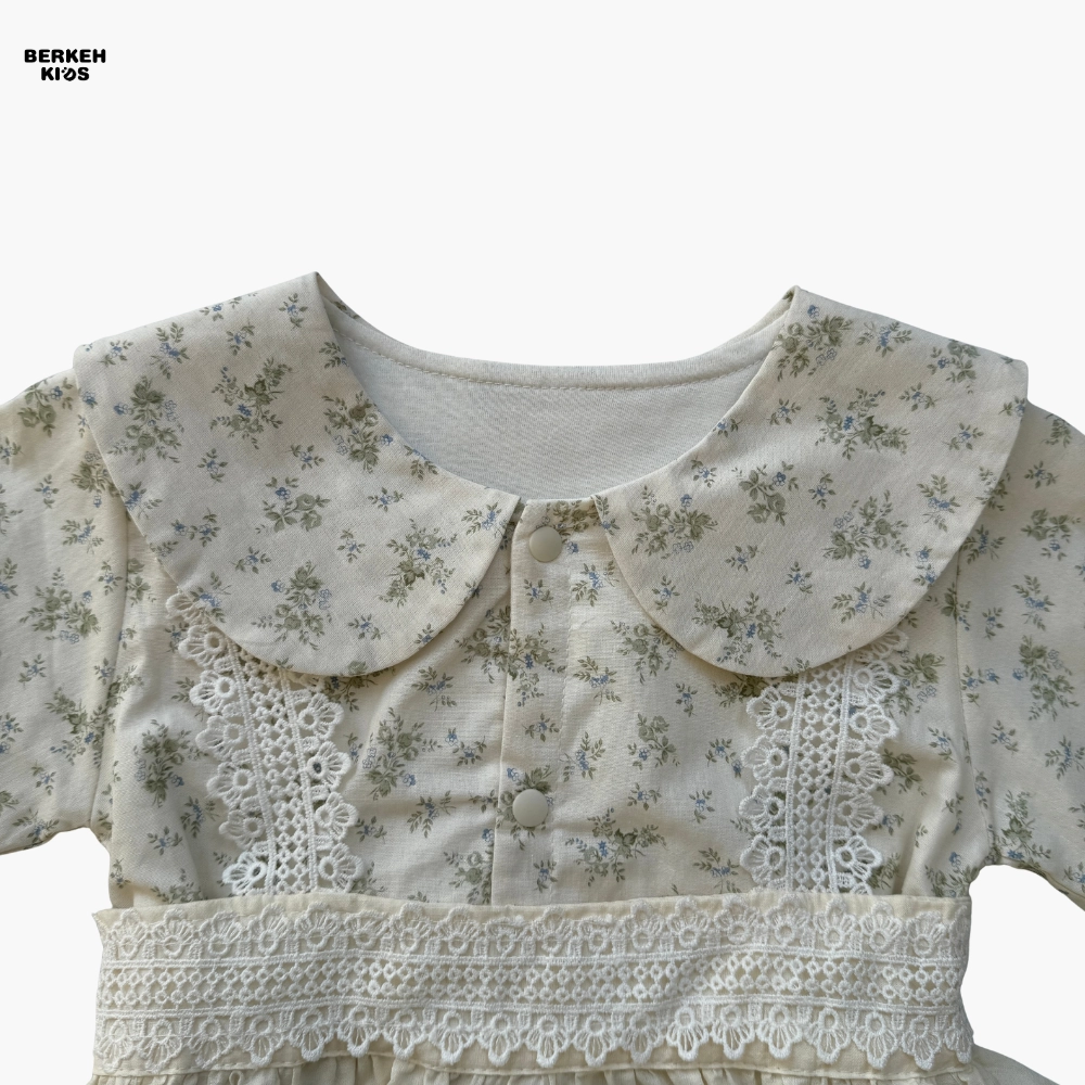 وجود یقه ب ب (Peter Pan Collar) با لبهدوزیهای توری ظریف و یک جیب کوچک با گلدوزی خرگوش، جلوهای بینظیر به این کار بخشیده است. پارچه این کار دارای طرح گلگلی بسیار ریز و ملیح است که حس لطافت دخترانه را دوچندان میکند و این بادی پیراهنی نوزادی دخترانه برای عکاسی در آتلیه گزینهای عالی محسوب میشود.