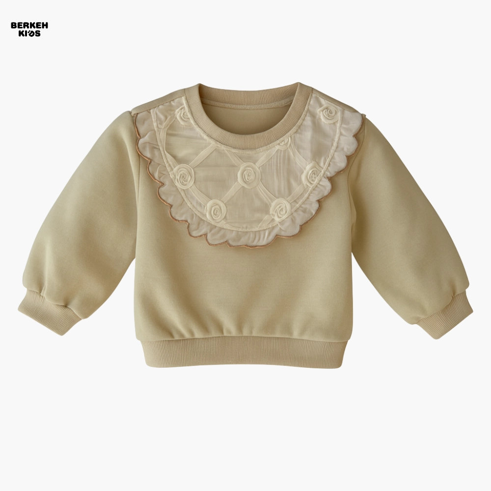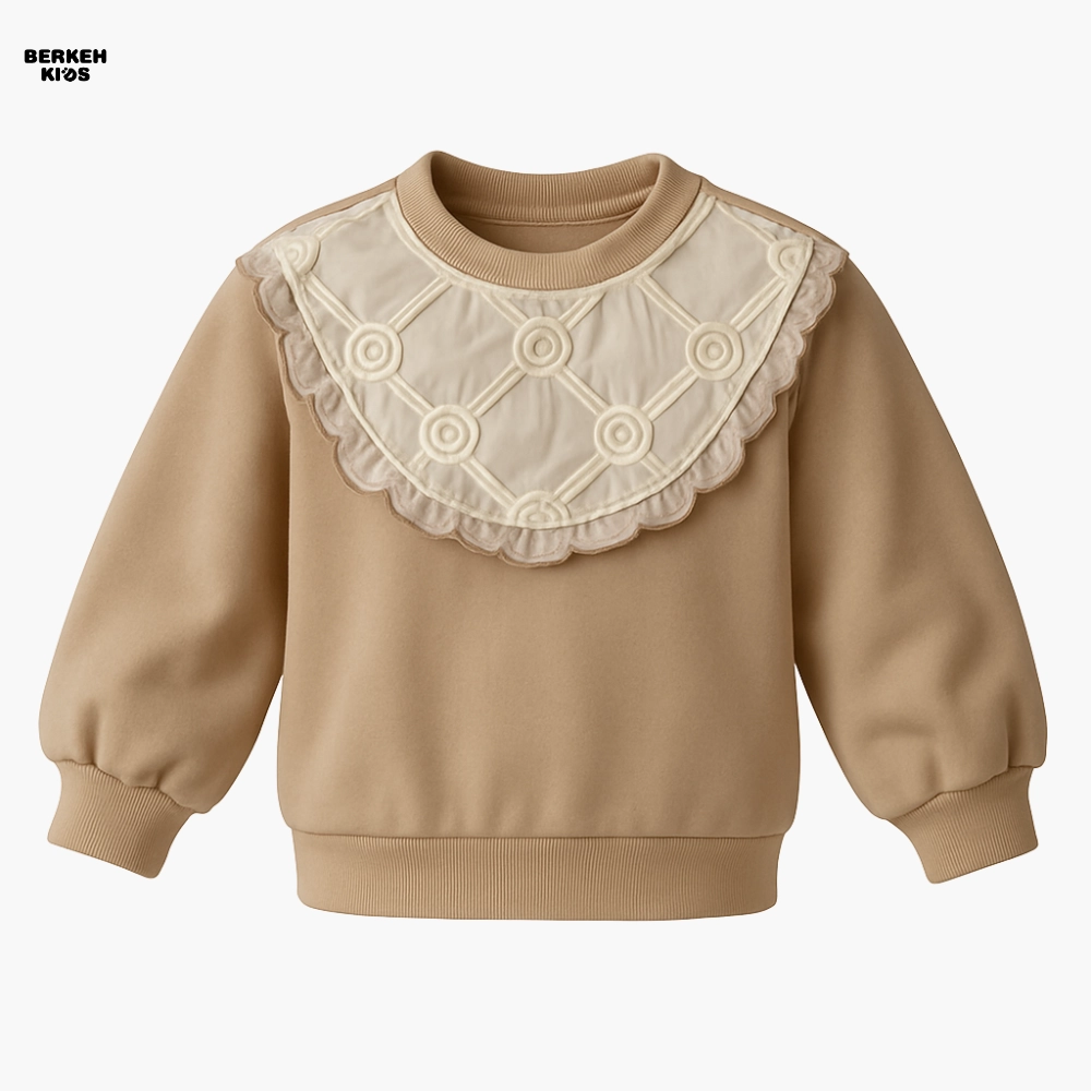 طراحی گیپور جلو، نقطه‌ای است که این بلوز را از مدل‌های ساده متمایز می‌کند. گیپور با طرح گل‌های ظریف و دخترانه روی یقه کار شده و استایلی کلاسیک، مرتب و بسیار جذاب ایجاد کرده است. به همین دلیل این مدل در دسته بلوز دخترانه گیپوردار شیک قرار می‌گیرد و معمولاً مادرها هنگام جستجوی عباراتی مثل “بلوز دخترانه یقه گیپور” یا “بلوز دورس دخترانه گیپور دار” دقیقاً به دنبال چنین مدل‌هایی هستند که ترکیبی از زیبایی و راحتی را ارائه می‌کنند.