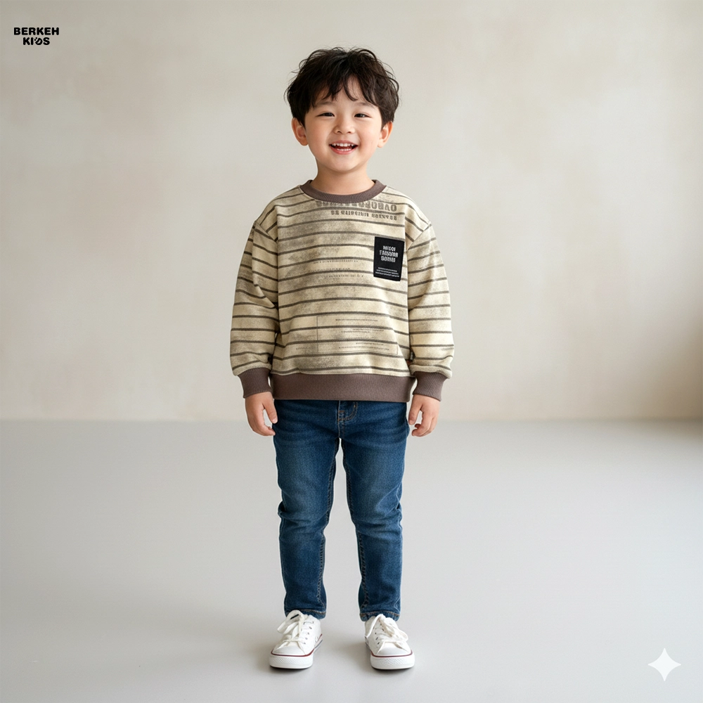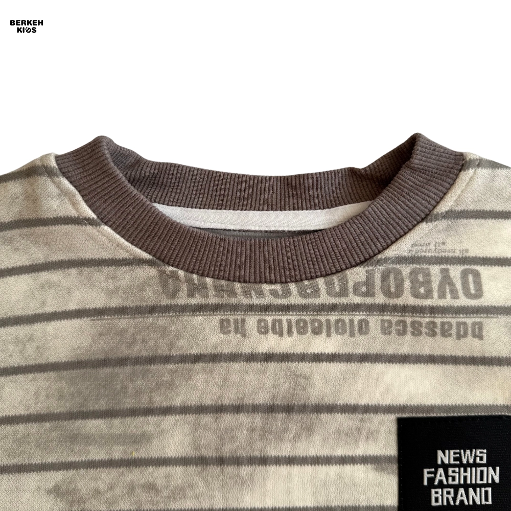 این دورس پسرانه وارداتی با طراحی خاص و طرح راهراه، انتخابی ایدهآل برای پسران خوشپوش است. ترکیب رنگ ابر و بادی با نوشتههای چاپی روی لباس، جلوهای اسپرت و مدرن ایجاد کرده است. یقه، سرآستین و پایین لباس با کش بافت کار شده تا فرم لباس مرتب و زیبا بایستد.