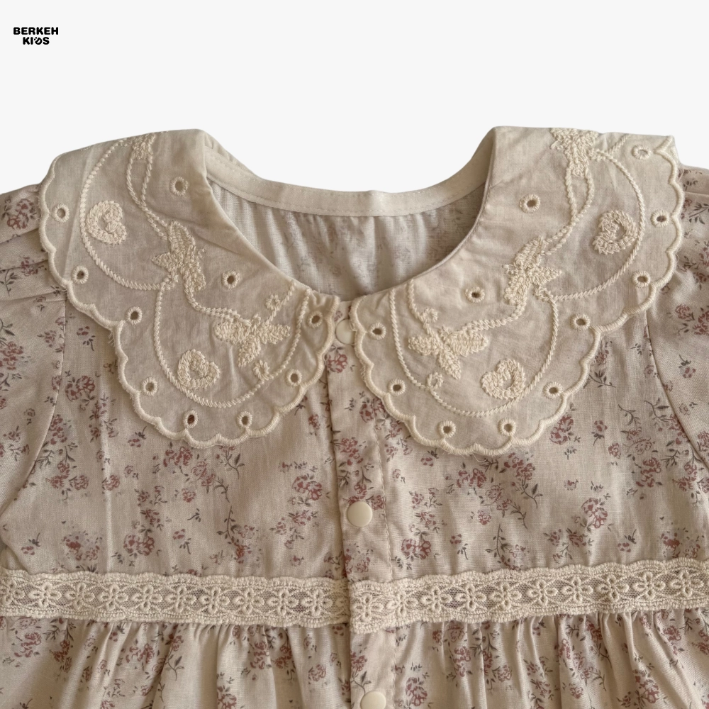 رامپر مجلسی نوزادی دخترانه گلدار با طراحی اروپایی و دوخت ظریف، انتخابی خاص و شیک برای نوزادان از ۶ تا ۲۴ ماه است. این رامپر مجلسی نوزادی دخترانه از پارچه لینن نرم و لطیف دوخته شده و با یقه گیپوری گلدوزیشده جلوهای کلاسیک و چشمنواز دارد. ترکیب طرح گلهای ریز با رنگهای ملایم و دوخت تمیز، این لباس را به گزینهای ایدهآل برای مراسم خاص، عکسبرداری و مهمانیها تبدیل کرده است.