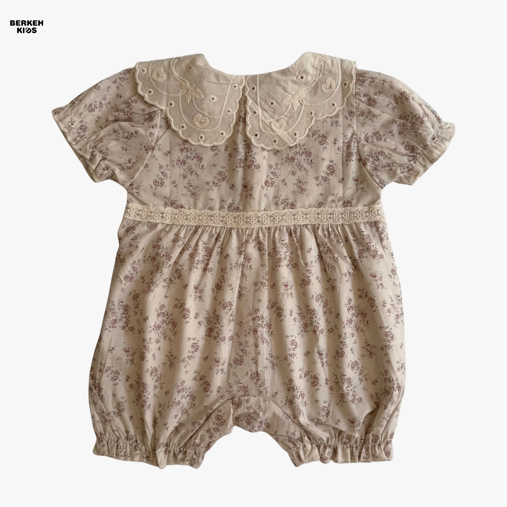 در طراحی این رامپر مجلسی نوزادی دخترانه جزئیات کاربردی بهخوبی رعایت شده است؛ قسمت پایین لباس دارای دکمه برای تعویض آسان پوشک است و دمپاها با کش نرم طراحی شدهاند تا راحتی کامل نوزاد در هر شرایطی حفظ شود. آستین کوتاه با لبه چیندار و فرم بیلری، استایل ظریف و بچهگانهای به لباس داده است.