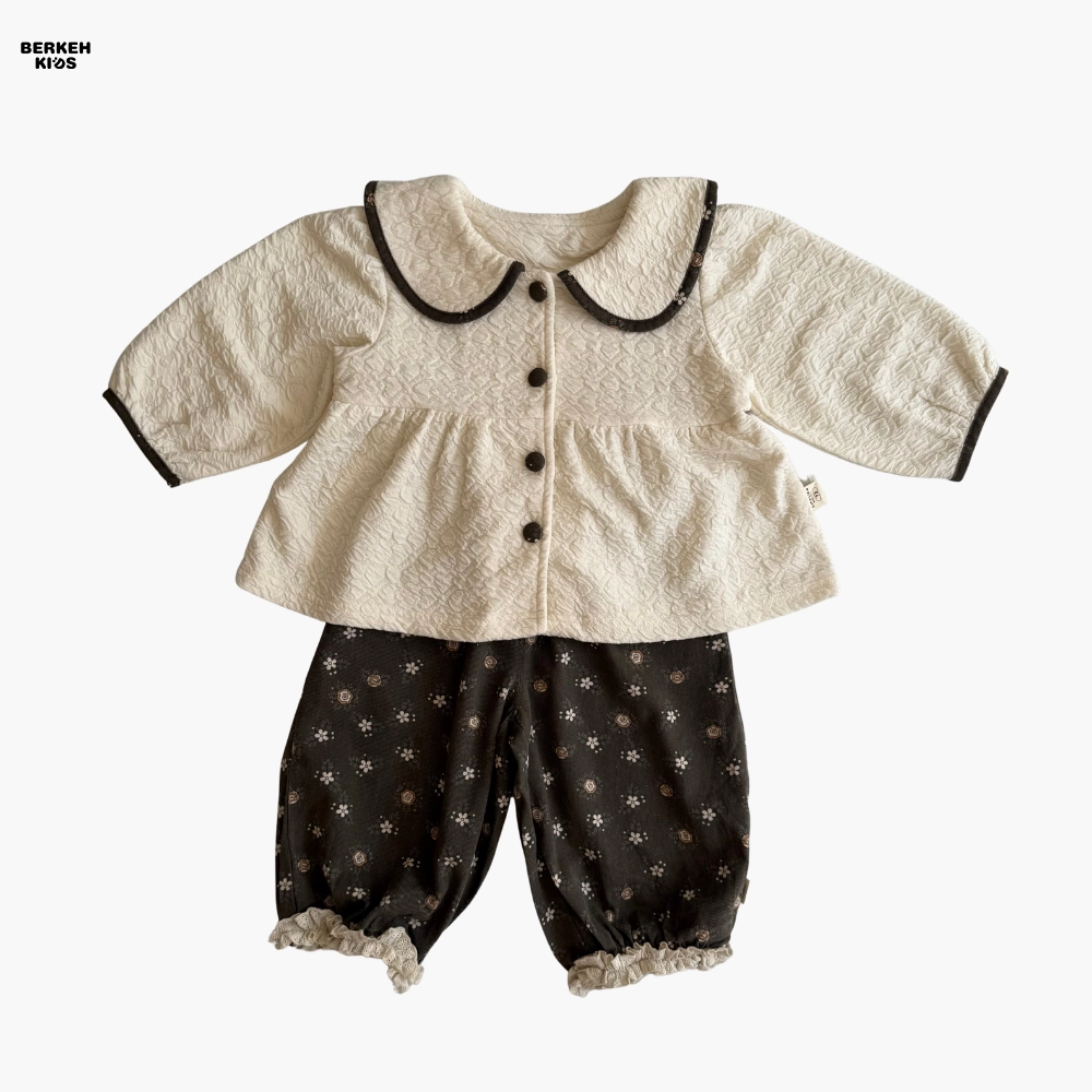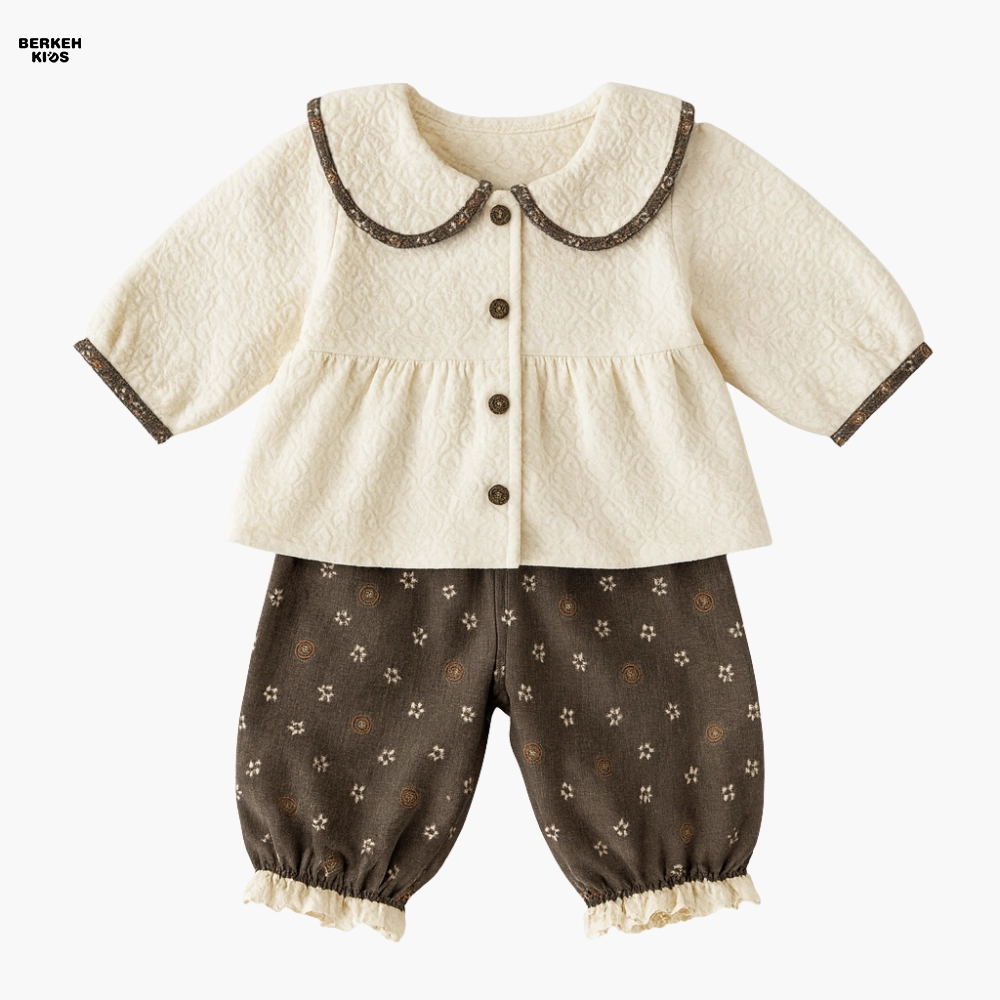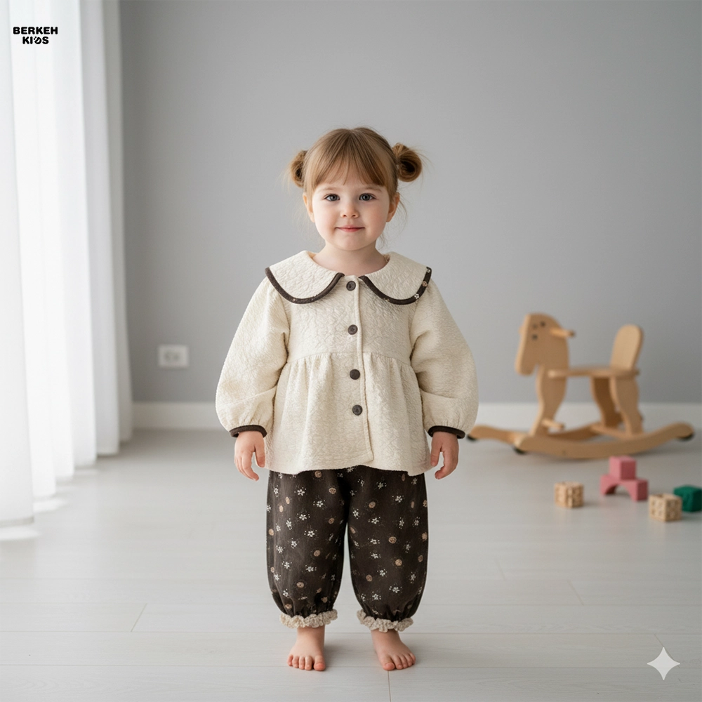 این ست دوتیکه دخترانه شامل بلوز کرم روشن با دوخت تمیز و طراحی کودکانه است که با شلوار طوسی گلدار هماهنگی دل انگیزی دارد. شلوار دارای کمر کشی نرم و دمپای چیندار بوده و پارچه لطیف و سبک آن باعث راحتی کودک در طول روز میشود. ترکیب رنگ ملایم و طراحی ساده اما چشمنواز، این لباس را به انتخابی عالی برای فصلهای پاییز و بهار تبدیل کرده است.