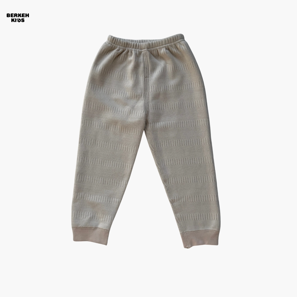 بلوز این ست از جنس دورس ضخیم و نرم تهیه شده و طرح اسپرت روی سینه، استایل پسرانه جذابی ایجاد کرده است. شلوار نیز از همان جنس دورس با داخل کرک تولید شده و کمر کشی دارد تا کودک بتواند بدون کمک، به راحتی آن را بپوشد. دمپای شلوار طراحی جمع و مرتب دارد و برای بازی، پیاده روی یا استفاده در مهد کودک بسیار مناسب است. این ست در دو رنگ محبوب کرم و طوسی ارائه شده است و به راحتی با کفش، کتونی، پافر، کاپشن و کت های زمستانی ست می شود.