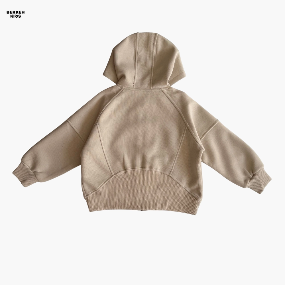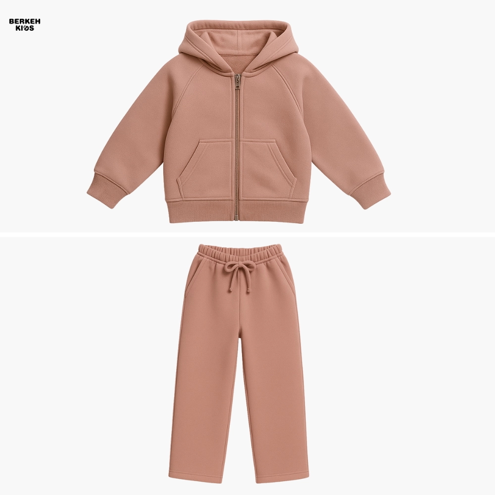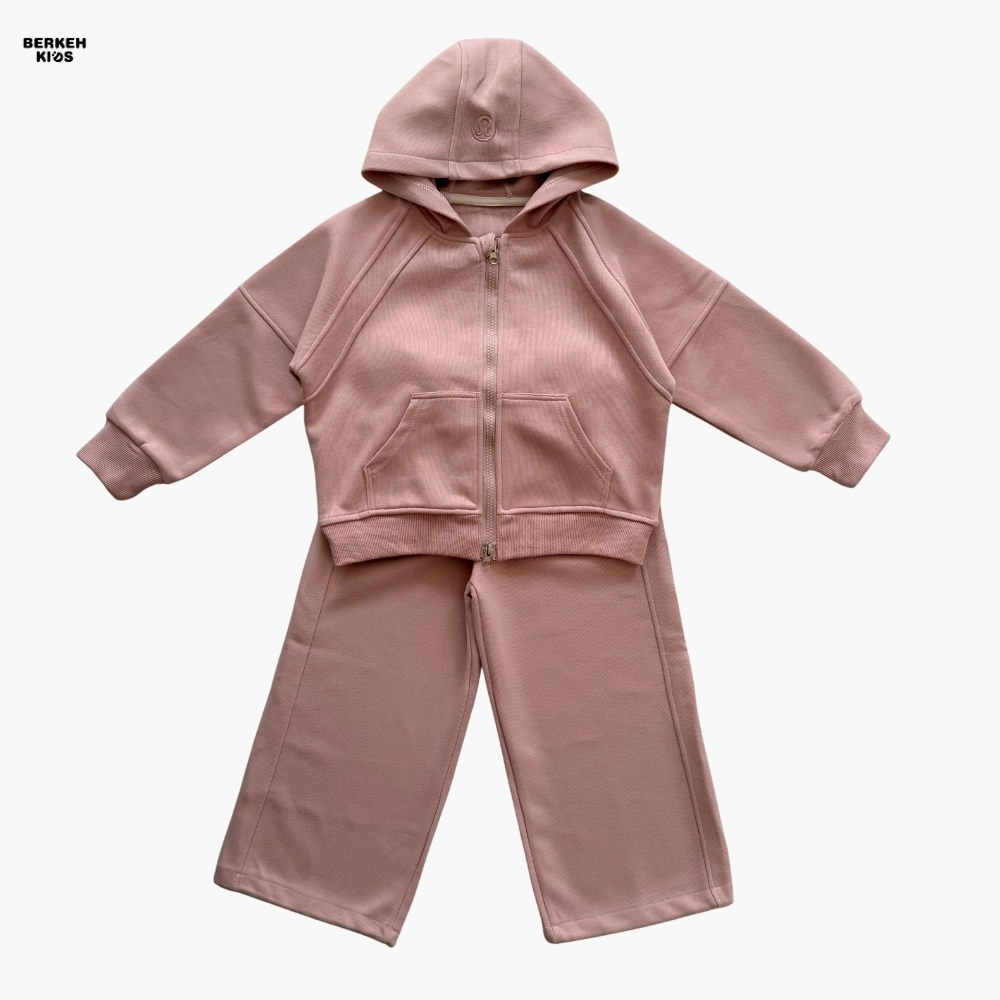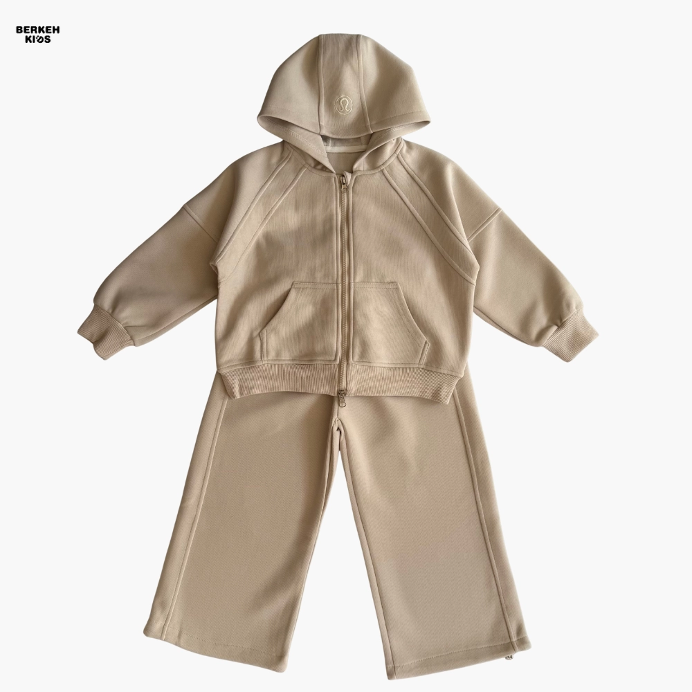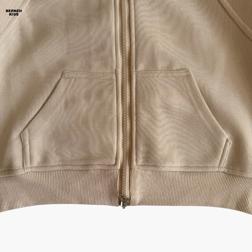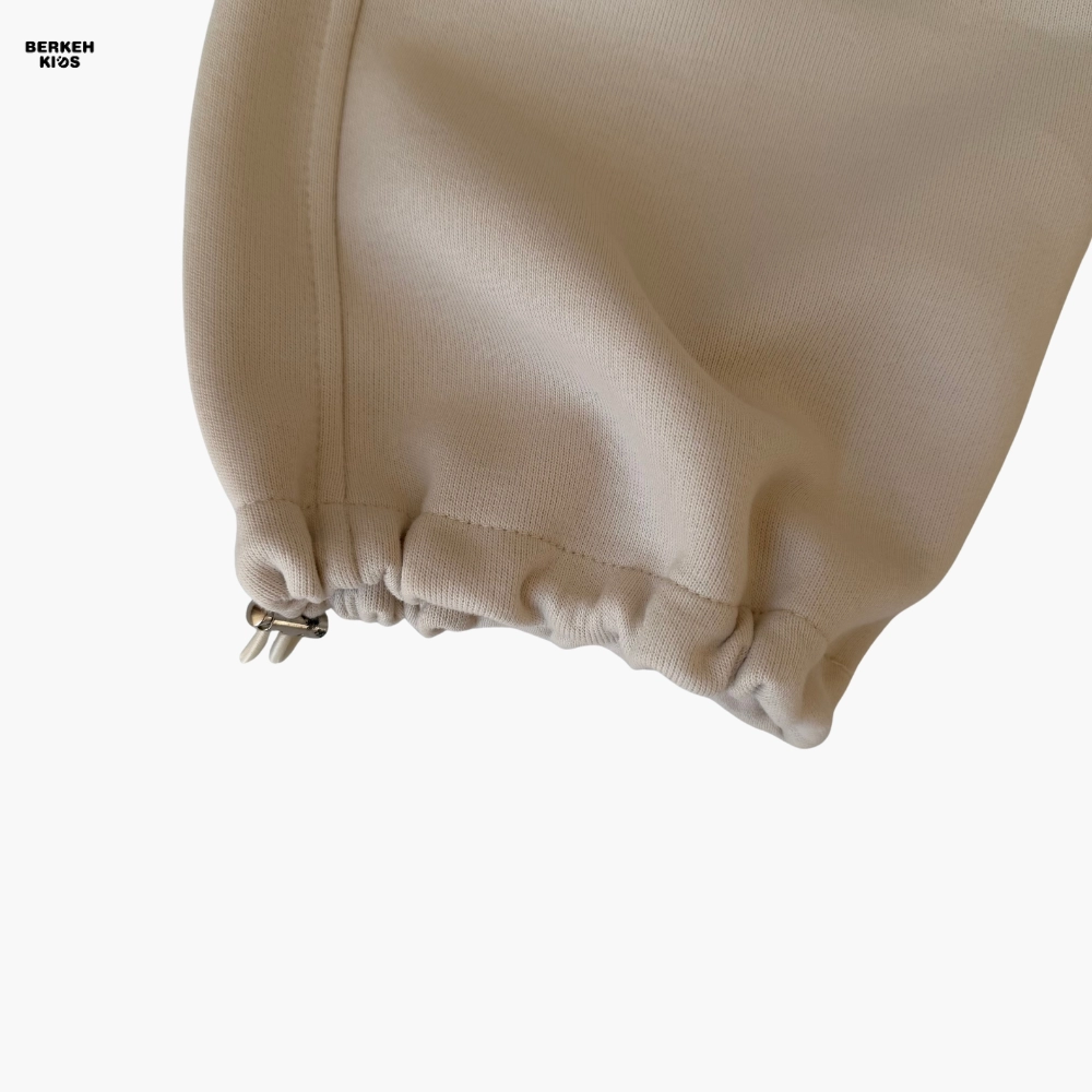 سویشرت این ست دارای زیپ سراسری و کلاه فانتزی است که به استایل کودک جلوهای مدرن و دخترانه میدهد. جیبهای جلو برای کاربردیتر شدن لباس طراحی شدهاند و دمپای سویشرت نیز با بند تنظیم قابل تغییر است تا بتوان فرم لباس را آزادتر یا فیتتر تنظیم کرد. آستینها نیز کشدوزی ظریفی دارند که باعث میشود لباس هنگام فعالیتهای روزانه روی بدن کودک راحت بنشیند و از بالا رفتن آستین جلوگیری شود.