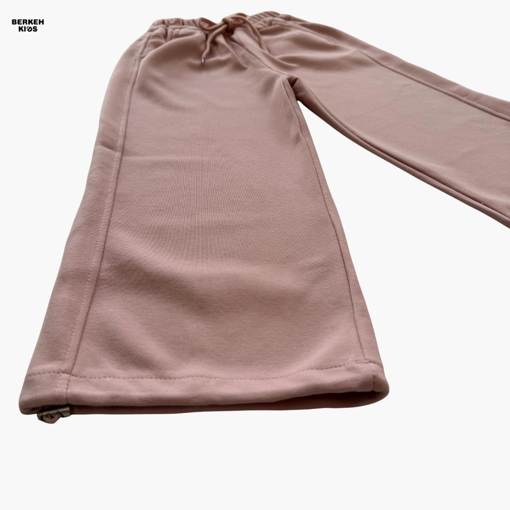 شلوار این ست با مدل بگ و آزاد دوخته شده تا حرکت کودک هنگام بازی، دویدن یا ورزش کاملاً آزاد و راحت باشد. دمپای شلوار گتدار و قابل جمع شدن است و میتوان آن را با کفش کتانی، بوت یا کفش اسپرت بهزیبایی ست کرد. ترکیب این مدل با سویشرت زیپدار، استایلی اسپرت و خاص برای دختران ۵ تا ۱۰ ساله ایجاد میکند.