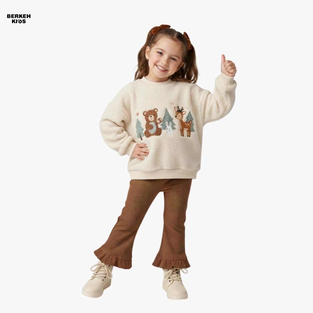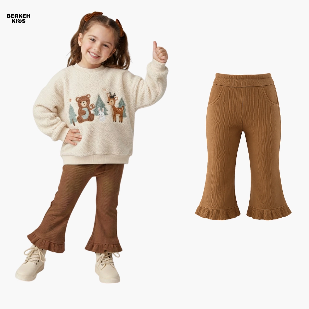 رنگ نخودی این شلوار توکرکی، یکی از کاربردیترین رنگها در پالت لباسهای زمستانی است. این رنگ خنثی و گرم، دست شما را برای ست کردن باز میگذارد. شما میتوانید این شلوار را با یک بلوز بافت کرم، یک هودی صورتی ملایم، یا حتی کاپشنهای رنگی ست کنید. مدل شلوار بوتکات و دمپا چیندار این کار باعث میشود که هم برای محیطهای رسمیتر مثل مهمانیها و آتلیه عکاسی مناسب باشد و هم برای محیطهای روزمره مثل خانه بازی و مهدکودک.