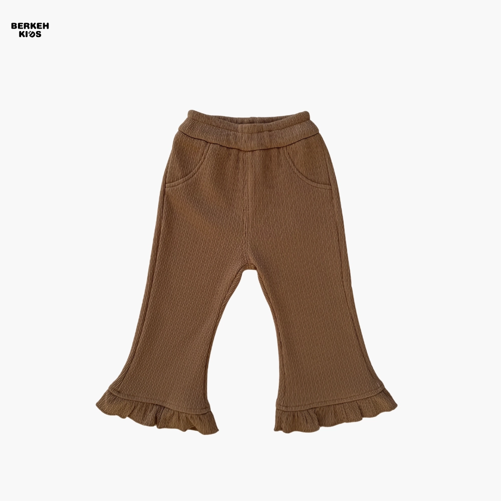 زیبایی این شلوار در جزئیات طراحی آن نهفته است. برخلاف شلوارهای راسته یا جذب معمولی، این شلوار زمستانی دخترانه از الگوی پرطرفدار «دمپا گشاد» پیروی میکند که در دنیای مد به آن شلوار بوتکات نیز میگویند. انتهای شلوار با یک برش چیندار بسیار ظریف و دخترانه تزیین شده است که به مدل اسپنیش معروف است. این چینها وقتی روی کفشهای نیمبوت یا کتانیهای ساقدار قرار میگیرند، جلوهای فوقالعاده شیک و متفاوت ایجاد میکنند که نگاه هر بینندهای را به خود جلب میکند.