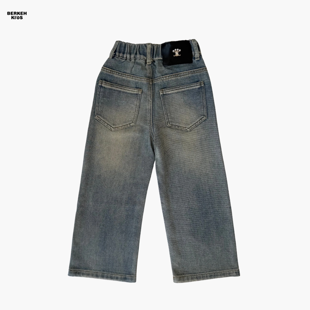 شلوار جین دخترانه آبی روشن مدل بگ مناسب سن 5 تا 10 سال