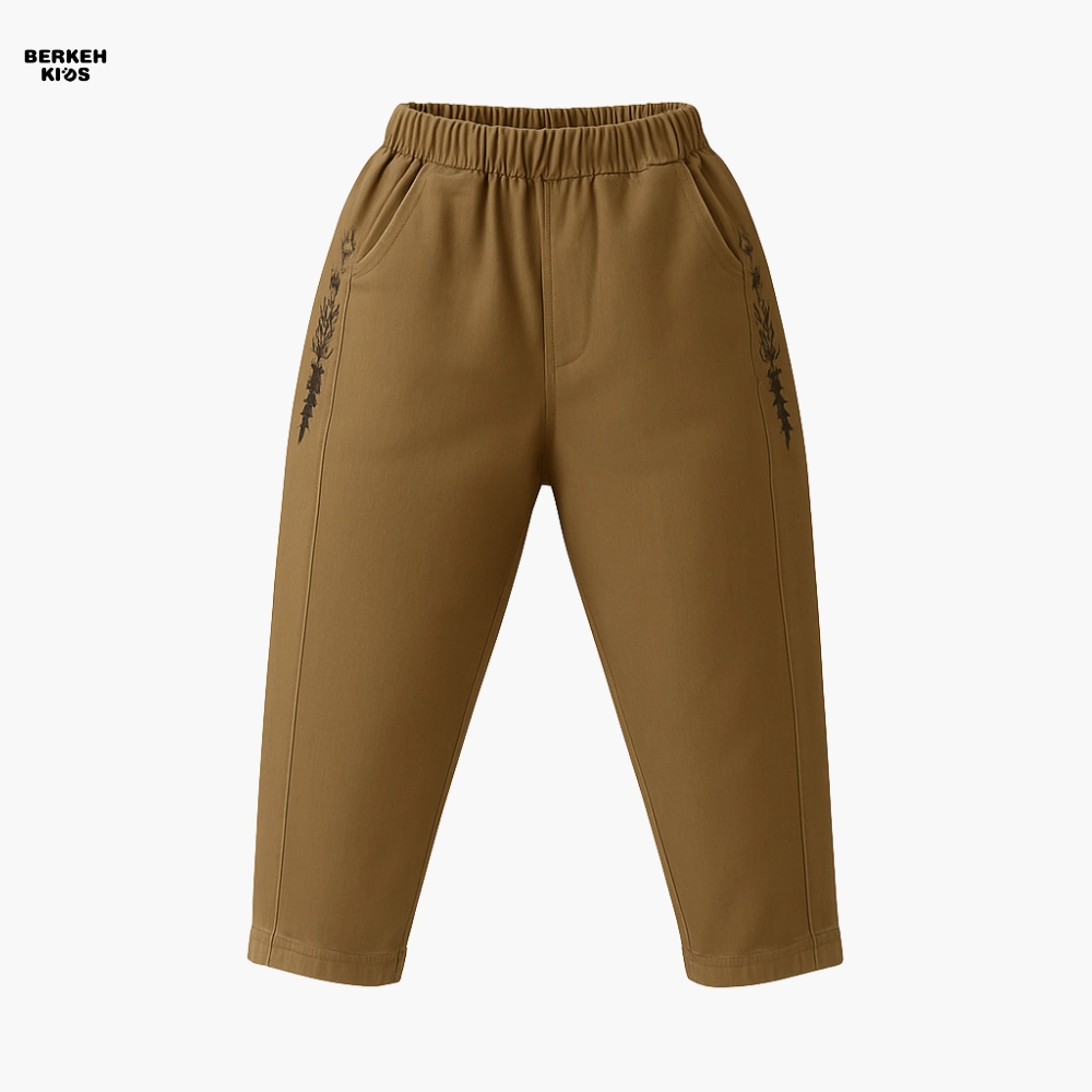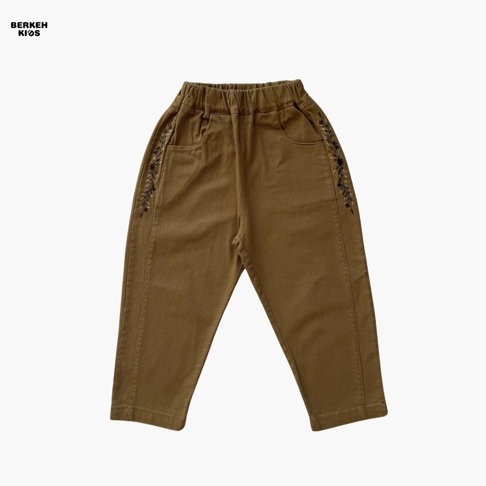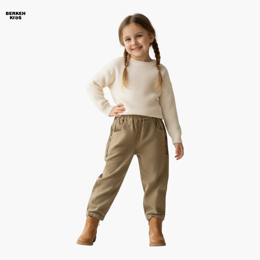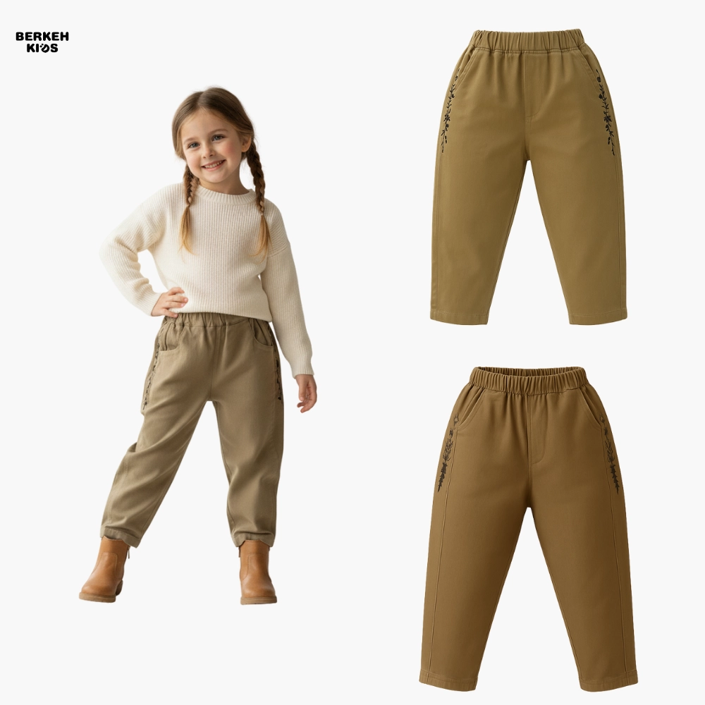 این شلوار بچگانه دخترانه با رنگ‌های کرم تیره و نخودی عرضه می‌شود که هر دو رنگ از پرطرفدارترین رنگ‌های خنثی در لباس‌های کودکانه هستند. ترکیب این رنگ‌ها با گلدوزی‌های ظریف و هماهنگ، استایلی لطیف و شیک می‌سازد که با هر بلوز یا تونیک ساده به‌راحتی ست می‌شود. از نظر کاربردی، این مدل انتخابی عالی برای مهدکودک، مهمانی‌های خانوادگی، گردش روزانه و حتی عکاسی کودک است.