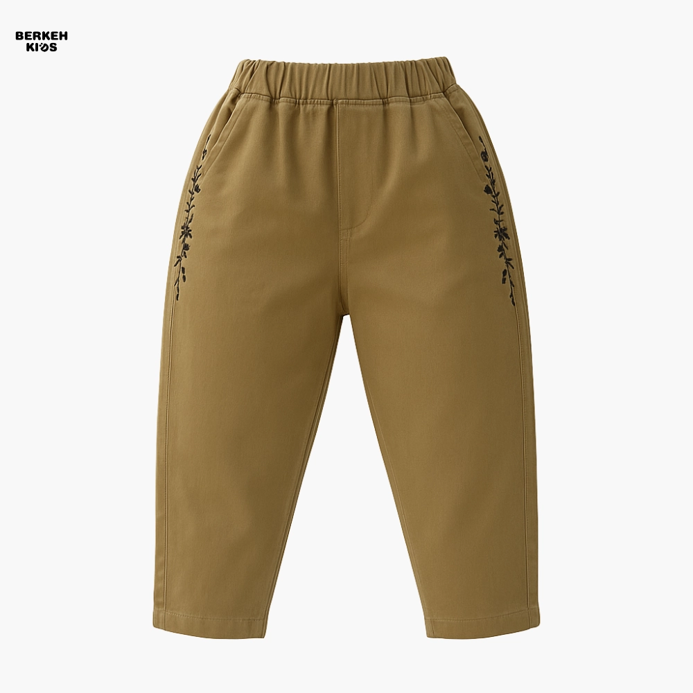 شلوار کتان دخترانه چهار فصل با طرح گل گلدوزی