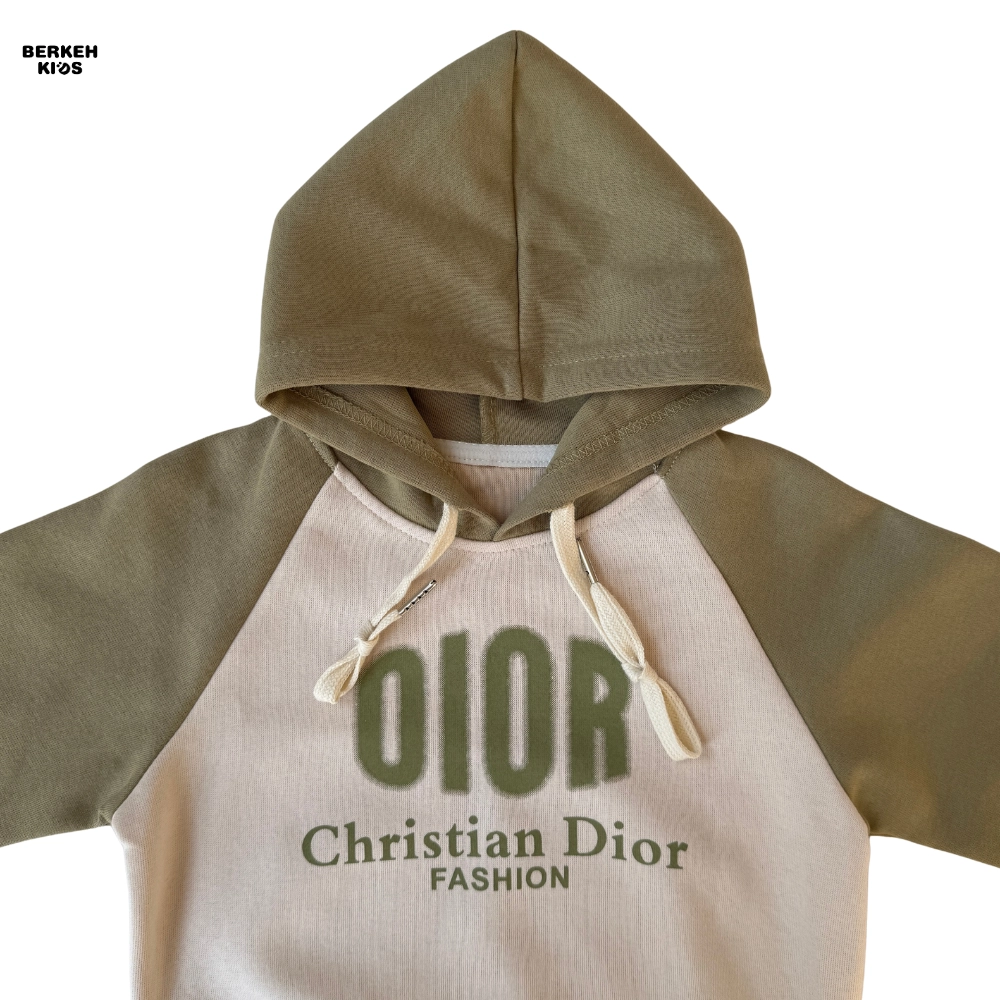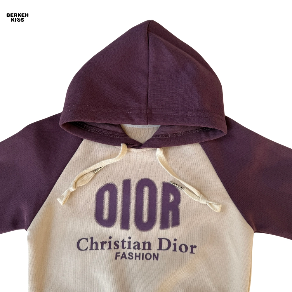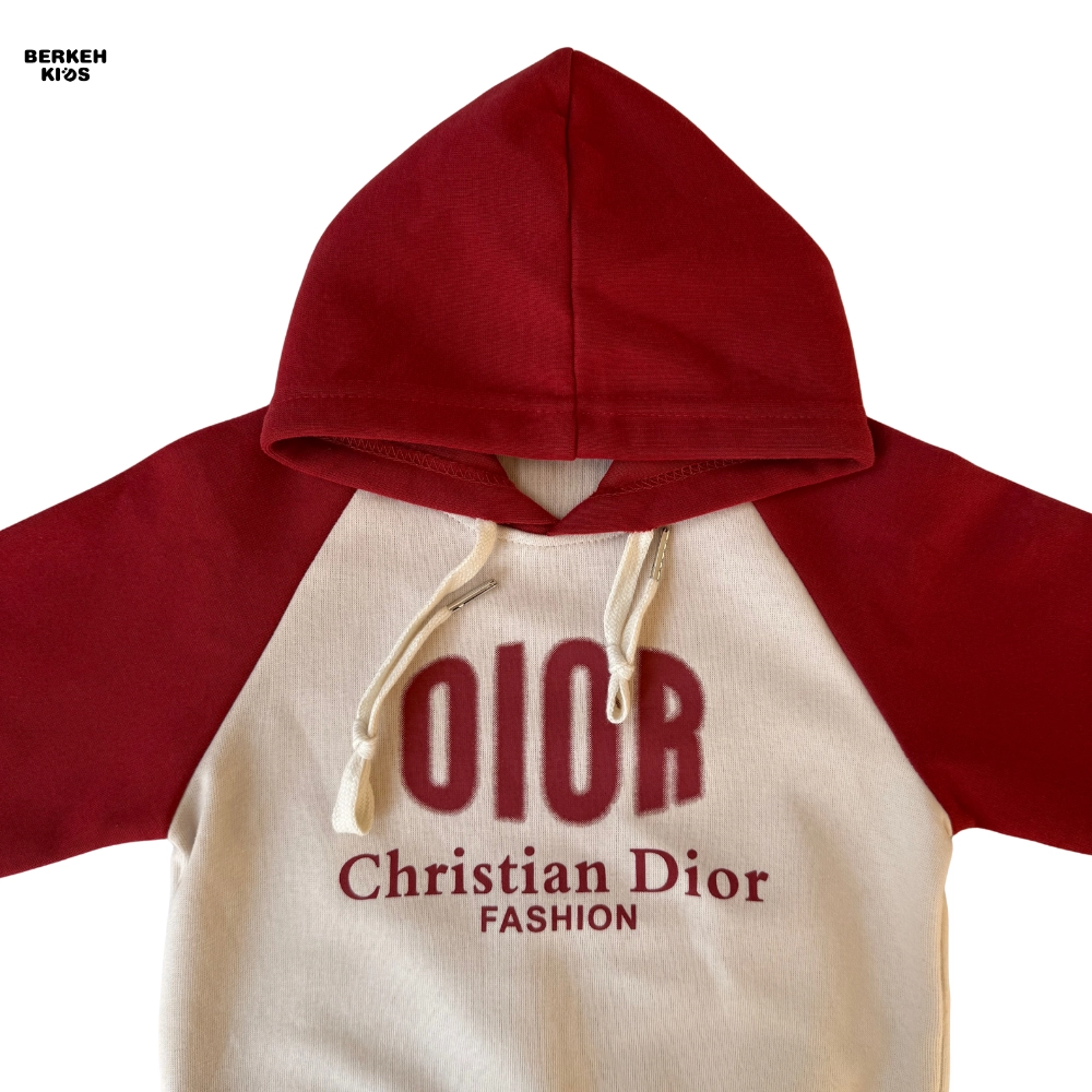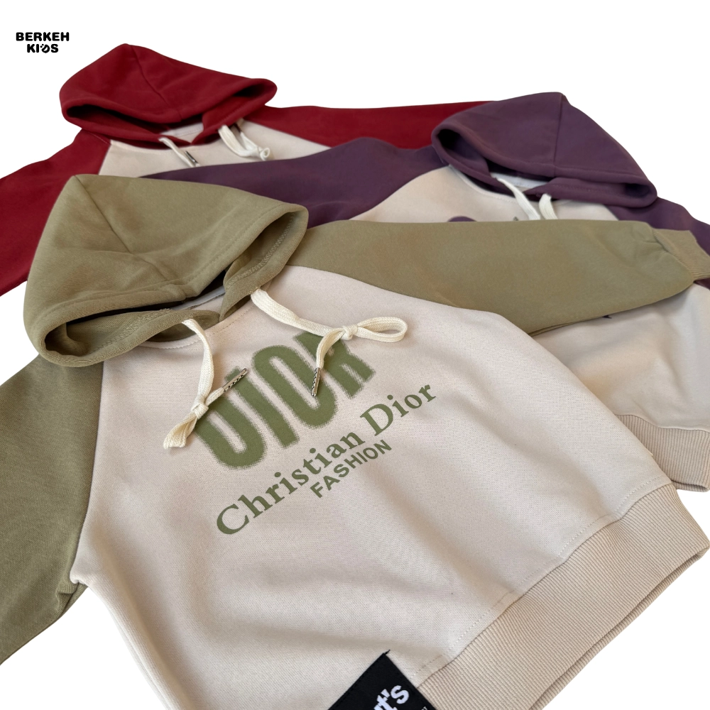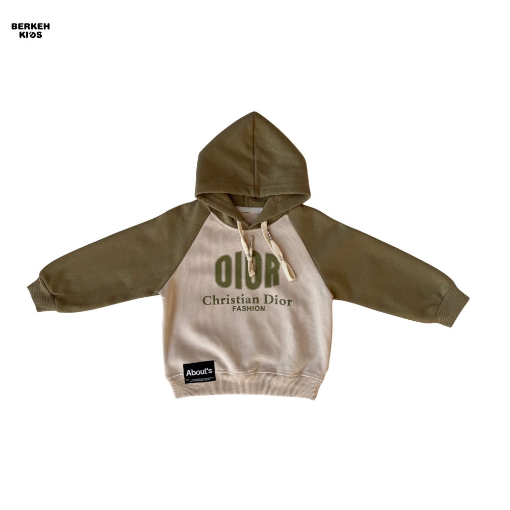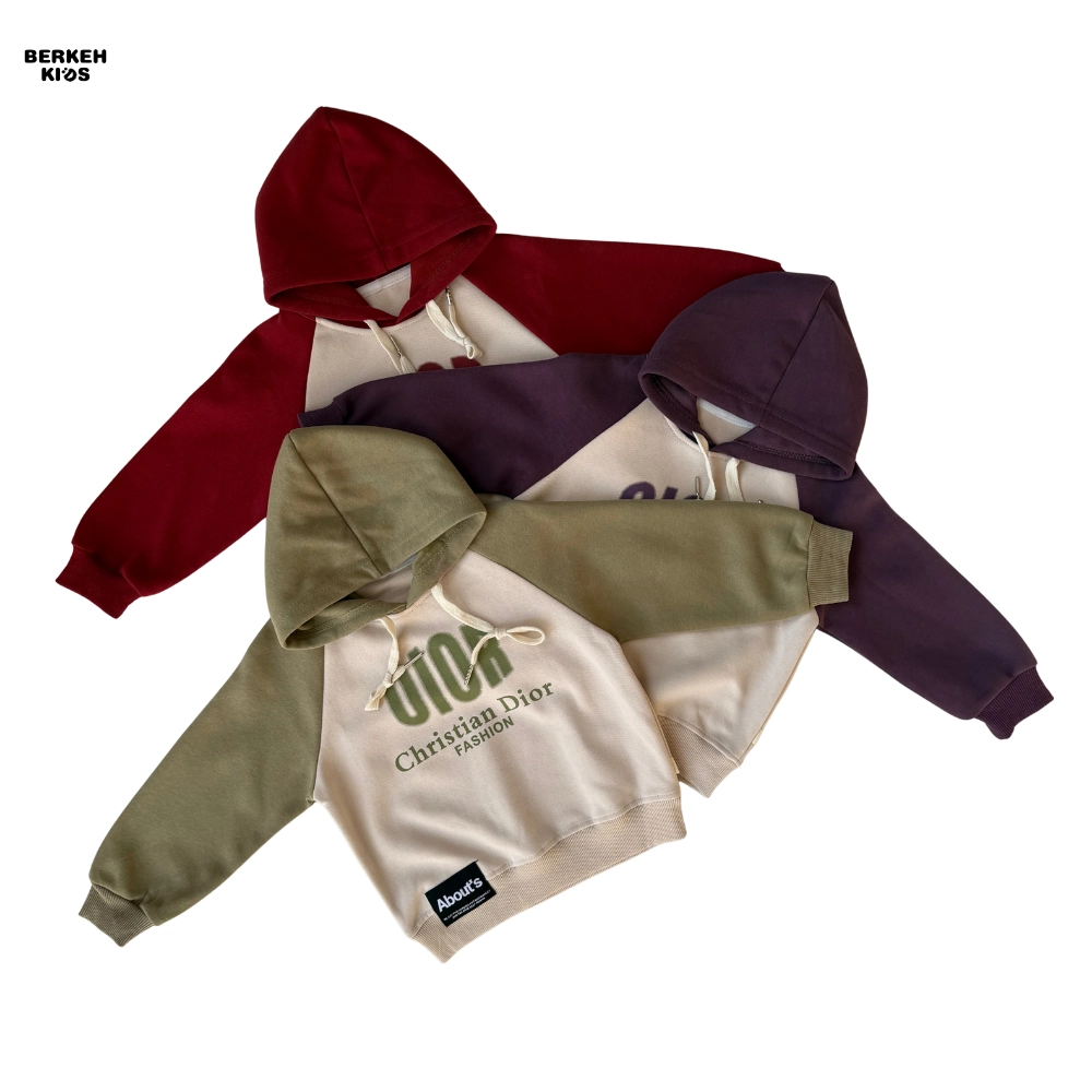 روی سینه این هودی، عبارت “DIOR Christian Dior FASHION” با فونتی زیبا و کیفیتی بالا چاپ شده است. بسیاری از والدین هنگام جستجو در اینترنت از عباراتی مانند “لباس بچه گانه مارک دار” یا “سویشرت طرح برند” استفاده میکنند؛ این محصول به خوبی پاسخگوی سلیقه والدینی است که دوست دارند فرزندشان لباسهایی با طرح برندهای مطرح جهانی بپوشد. وجود بندهای تزیینی روی کلاه و یک تگ کوچک پارچهای با نوشته “About’s” در پایین لباس، جزئیات ظاهری این کار را تکمیل کرده و آن را از مدلهای ساده متمایز میکند.