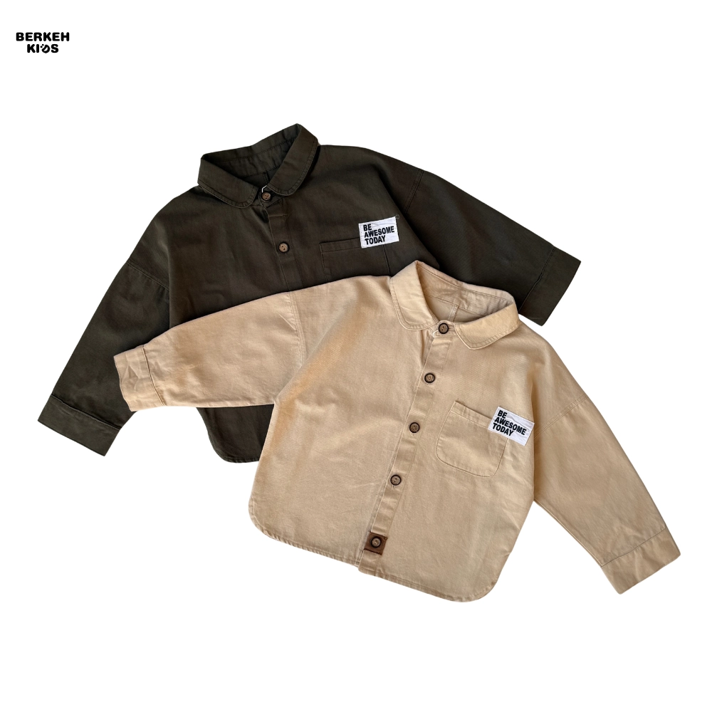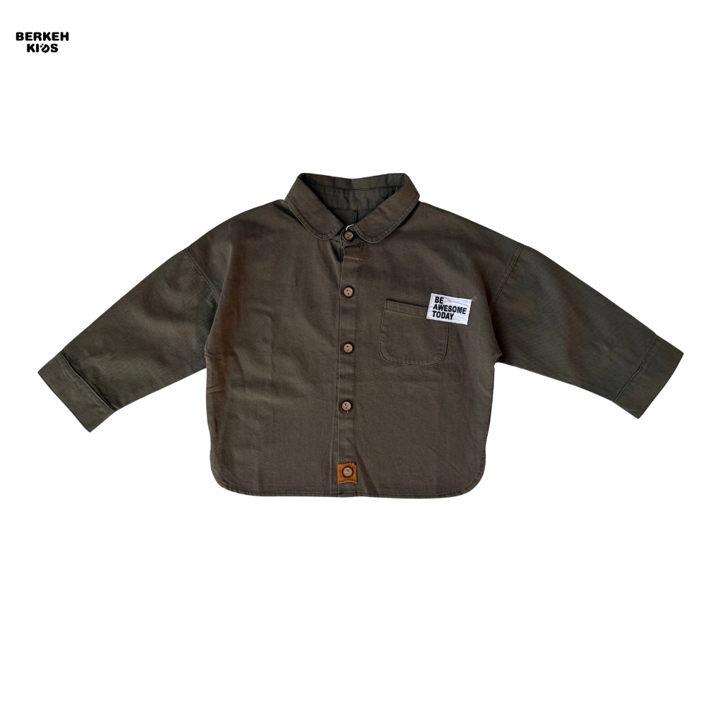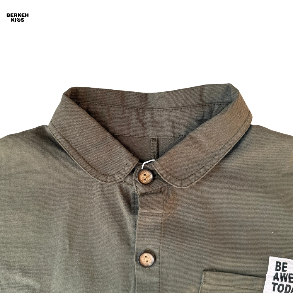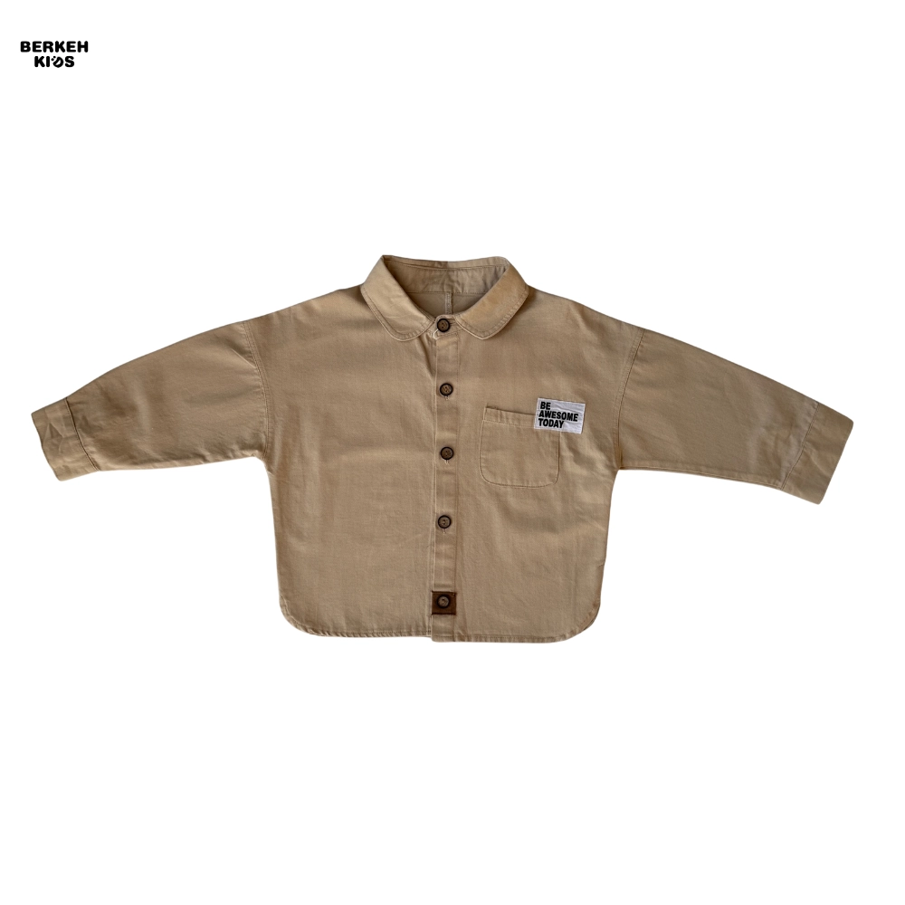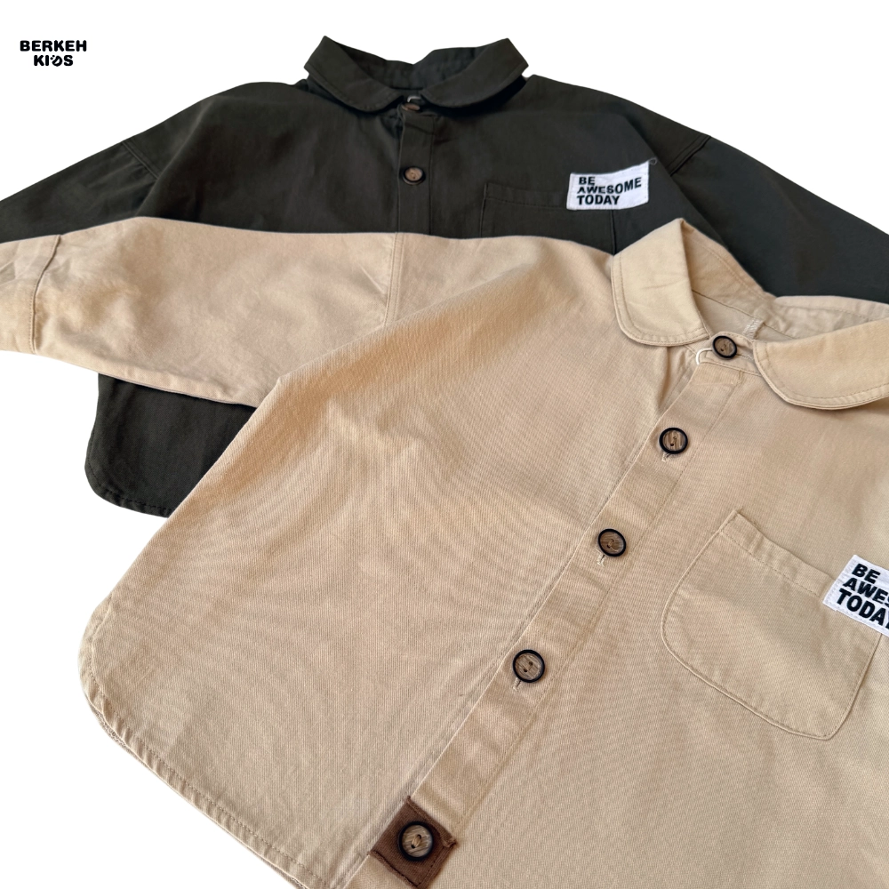امروزه در دنیای مد و فشن کودکان، استفاده از عبارات مثبت بسیار باب شده است. ظاهر این پیراهن با جزئیات مینیمال و بسیار جذاب تزیین شده است. یقه برگردان (Babe Collar) در کنار دکمههای طرح چوب، جلوهای وینتج و در عین حال مدرن به لباس بخشیده است. اما نقطه قوت طراحی، جیب سمت چپ است که این محصول را به یک بلوز پسرانه با جمله انگیزشی تبدیل کرده است. عبارت انگلیسی “BE AWESOME TODAY” (امروز عالی باش) که روی جیب گلدوزی شده، پیامی مثبت و انرژیبخش دارد که حس اعتماد به نفس را تداعی میکند.