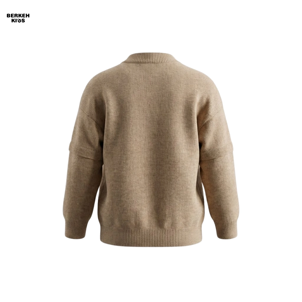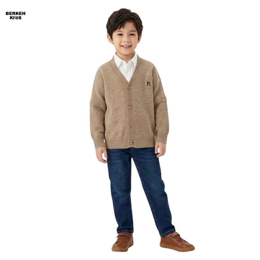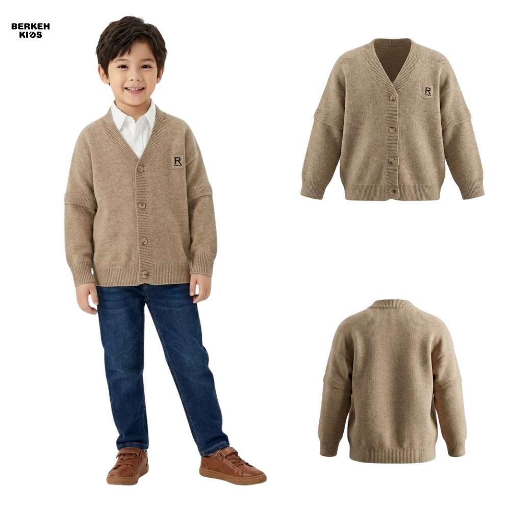 وقتی صحبت از استایل پاییزه و زمستانی کودک میشود، کیفیت حرف اول را میزند. این ژاکت بافت بچگانه پسرانه از الیاف وارداتی درجه یک با تراکم بافت بالا تولید شده است. لطافت این بافت پسرانه به گونهای است که هیچگونه حس خارش یا حساسیتی برای پوست لطیف کودکان ایجاد نمیکند. مدل این لباس به صورت جلو دکمهدار یا کاردیگن طراحی شده که پوشیدن آن را بسیار آسان کرده و برای استفاده لایهای (Layering) روی پیراهن یا تیشرت بسیار مناسب است. دکمههای محکم، یقه هفت کلاسیک و پچ چرمی طرح “R” روی سینه، جزئیاتی هستند که زیبایی این کار را دوچندان کردهاند.