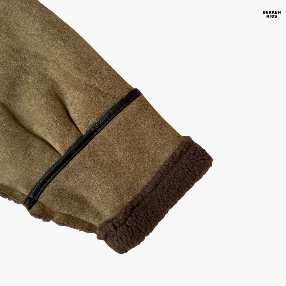 بدنه این کاپشن از چرم بوفالو اصل ساخته شده که ضمن داشتن ظاهری شیک و لوکس، مقاومت بالایی در برابر باد و رطوبت دارد. آستر داخلی پشمی ضخیم آن نیز گرمای مطبوعی برای کودک فراهم میکند تا در روزهای سرد پاییز و زمستان کاملاً راحت باشد.
