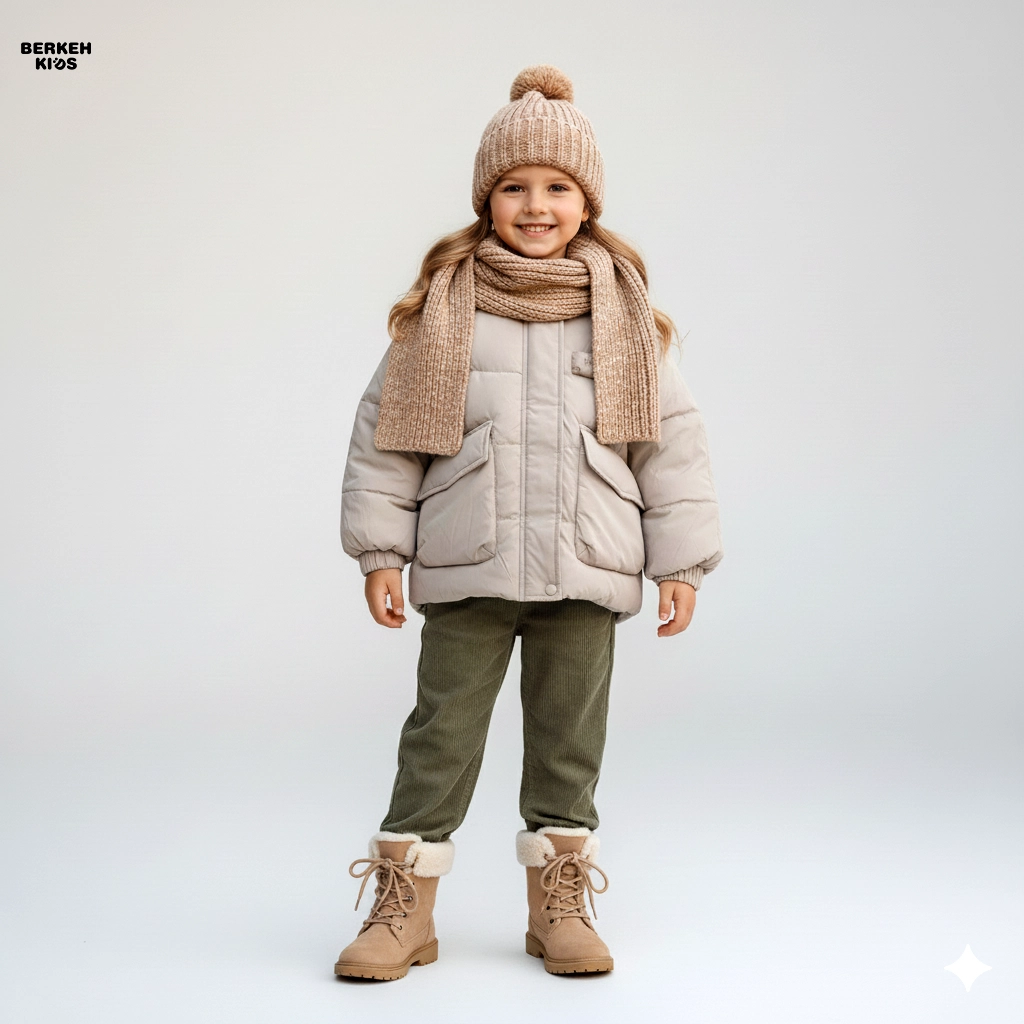 کاپشن بچگانه دخترانه وارداتی یکی از مدلهای خاص و محبوب برند Mu Yun Xi است که با طراحی پفی، رنگ طوسی روشن و کیفیت بسیار بالا، در مجموعه برکه کیدز (Berkeh Kids) عرضه میشود. این مدل از آن دسته لباسهایی است که علاوه بر ظاهر زیبا، در روزهای سرد پاییز و زمستان گرمای فوقالعادهای برای کودک فراهم میکند.