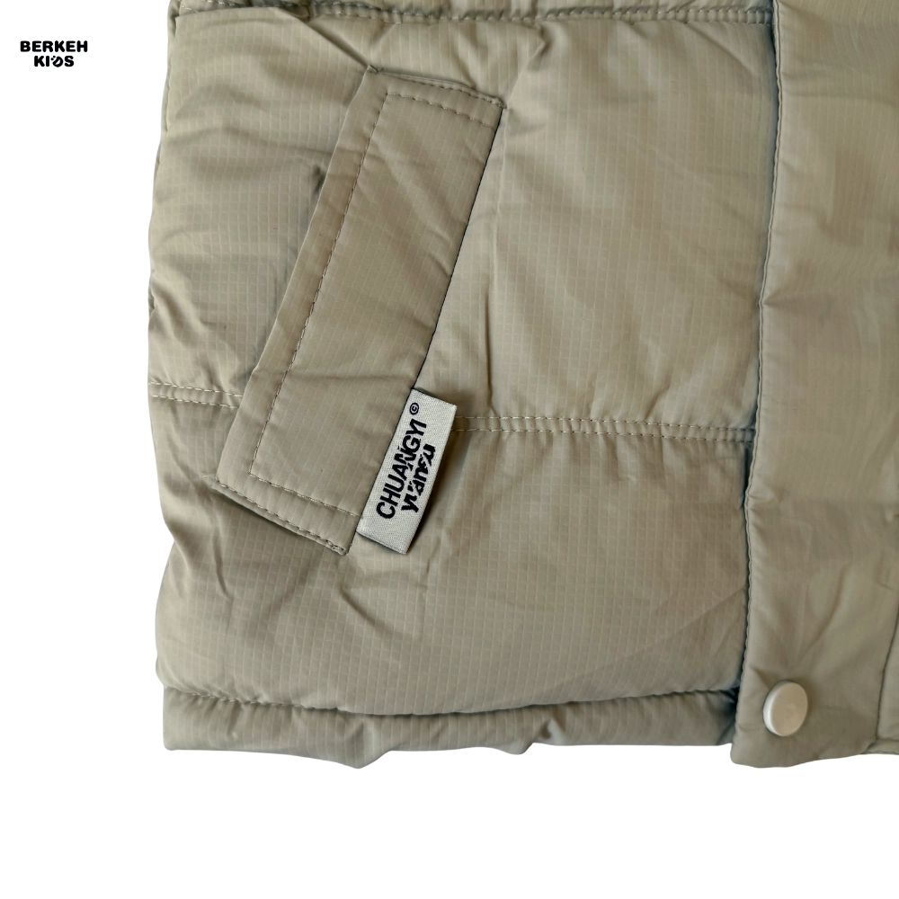 یکی دیگر از ویژگیهای مهم طراحی این مدل، کلاه متصل آن است. در لباسهای زمستانی کودک، کلاههای جداشونده معمولاً یا گم میشوند و یا به دلیل وجود درزهای اتصال (دکمه یا زیپ)، راهی برای نفوذ سرما به گردن باز میگذارند. اما در این مدل، کلاه به صورت یکسره و متصل به بدنه دوخته شده تا پوششدهی کاملی و یکپارچهای روی گوشها، سر و گردن داشته باشد. لبههای کلاه کاملاً روی پیشانی قرار میگیرد و از برخورد باد مستقیم به صورت کودک جلوگیری میکند که برای پیادهرویهای زمستانی و رفتن به مهدکودک بسیار حیاتی است.