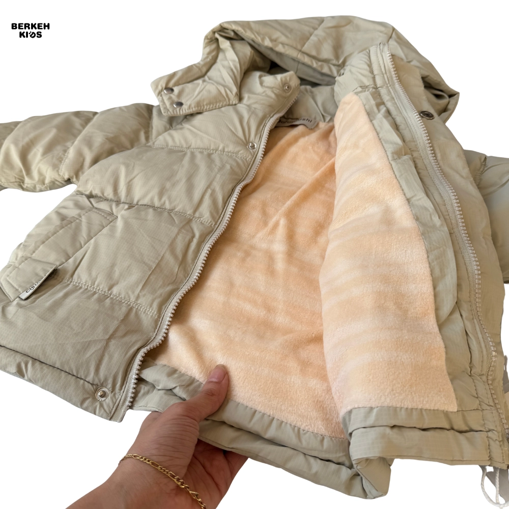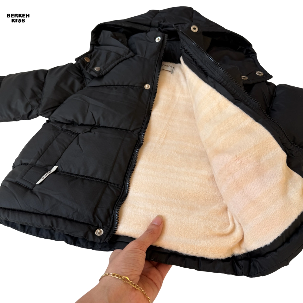 این کاپشن در دسته مدلهای پفی (Puffer) قرار میگیرد که به دلیل وجود لایههای هوا در بین الیاف داخلی و رویه، به طور طبیعی مانع از خروج گرمای بدن میشوند. اما ویژگی اصلی که این مدل را از سایر کاپشنهای معمولی بازار متمایز میکند، لایه داخلی آن است. سراسر قسمت داخلی این لباس (تنه و پشت) با خز برهای بسیار متراکم، ضخیم و لطیف پوشیده شده است. این لایه خز نه تنها حس آرامش و لطافت فوقالعادهای را به پوست حساس کودک منتقل میکند، بلکه مانند یک سد دفاعی محکم در برابر نفوذ باد و سوز سرما عمل میکند.