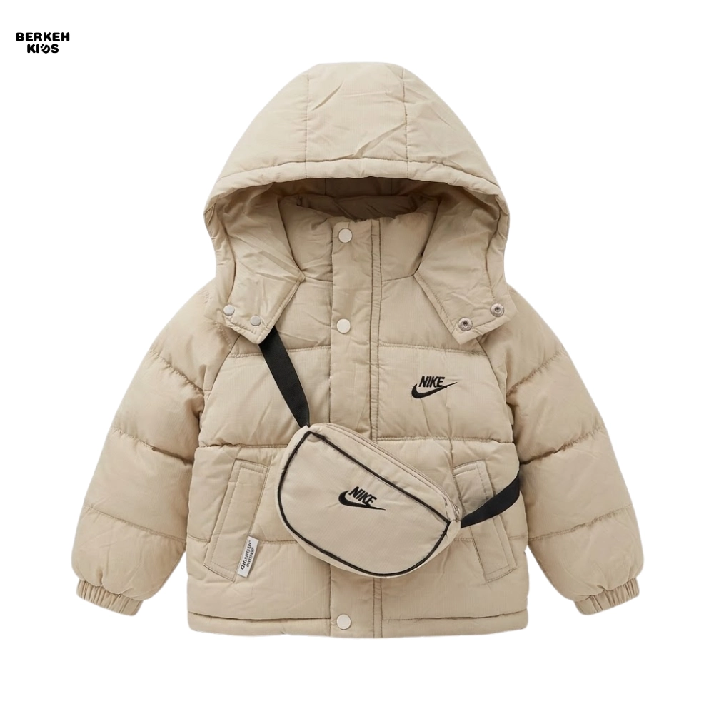 طراحی اسپرت این کاپشن بچگانه نایک پفی خارجی با لوگوی بزرگ نایک در پشت و لوگوی کوچک در جلو، جلوهای خاص و برند به آن بخشیده است. اما جذابترین بخش، وجود یک کیف دوشی ست با کاپشن است که استایل کودک را تکمیل میکند. این کیف کاربردی علاوه بر ایجاد یک تیپ خیابانی (Street Style) مدرن، فضای مناسبی برای حمل وسایل شخصی و خوراکیهای مورد علاقه کودک فراهم میآورد.