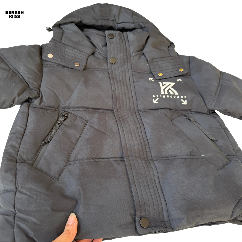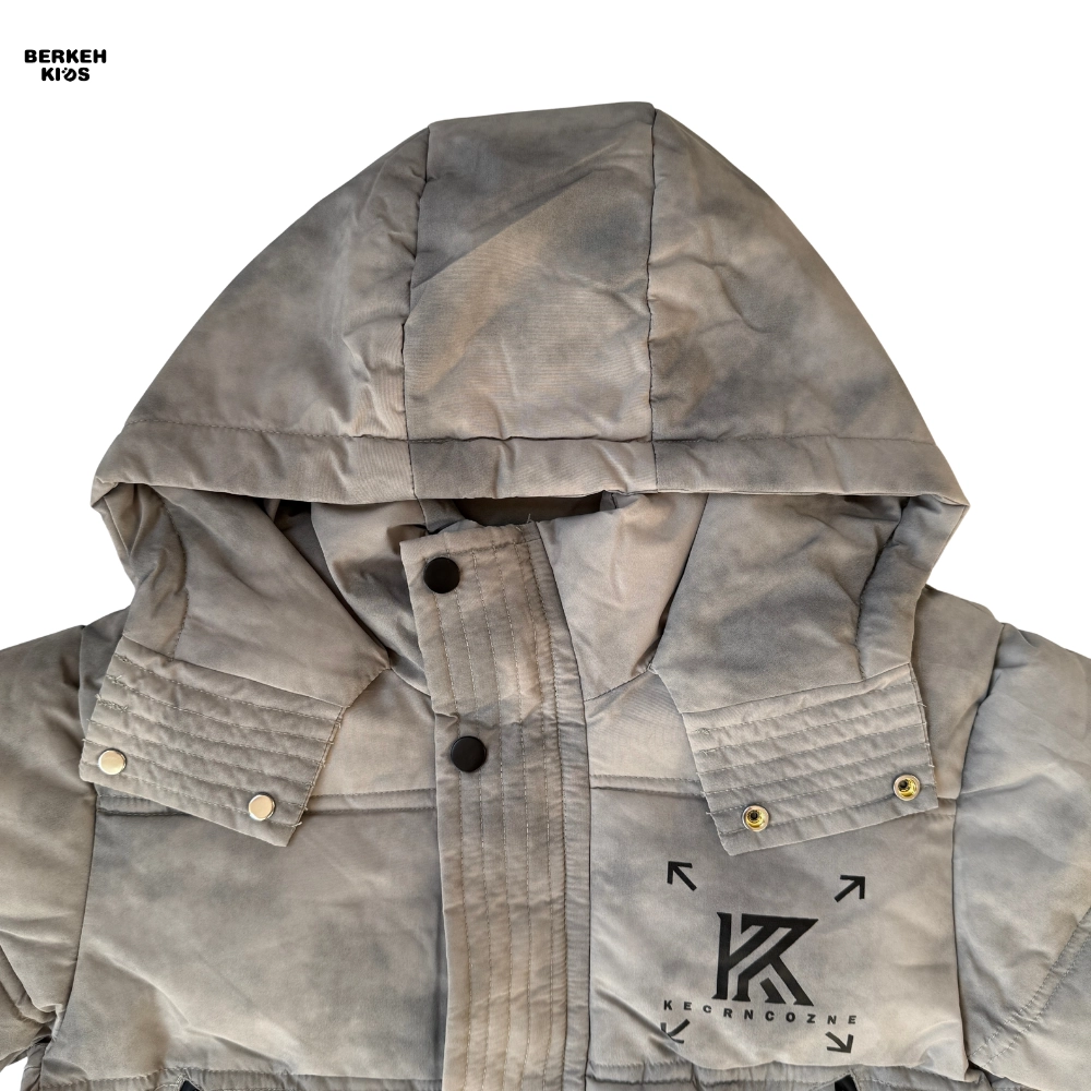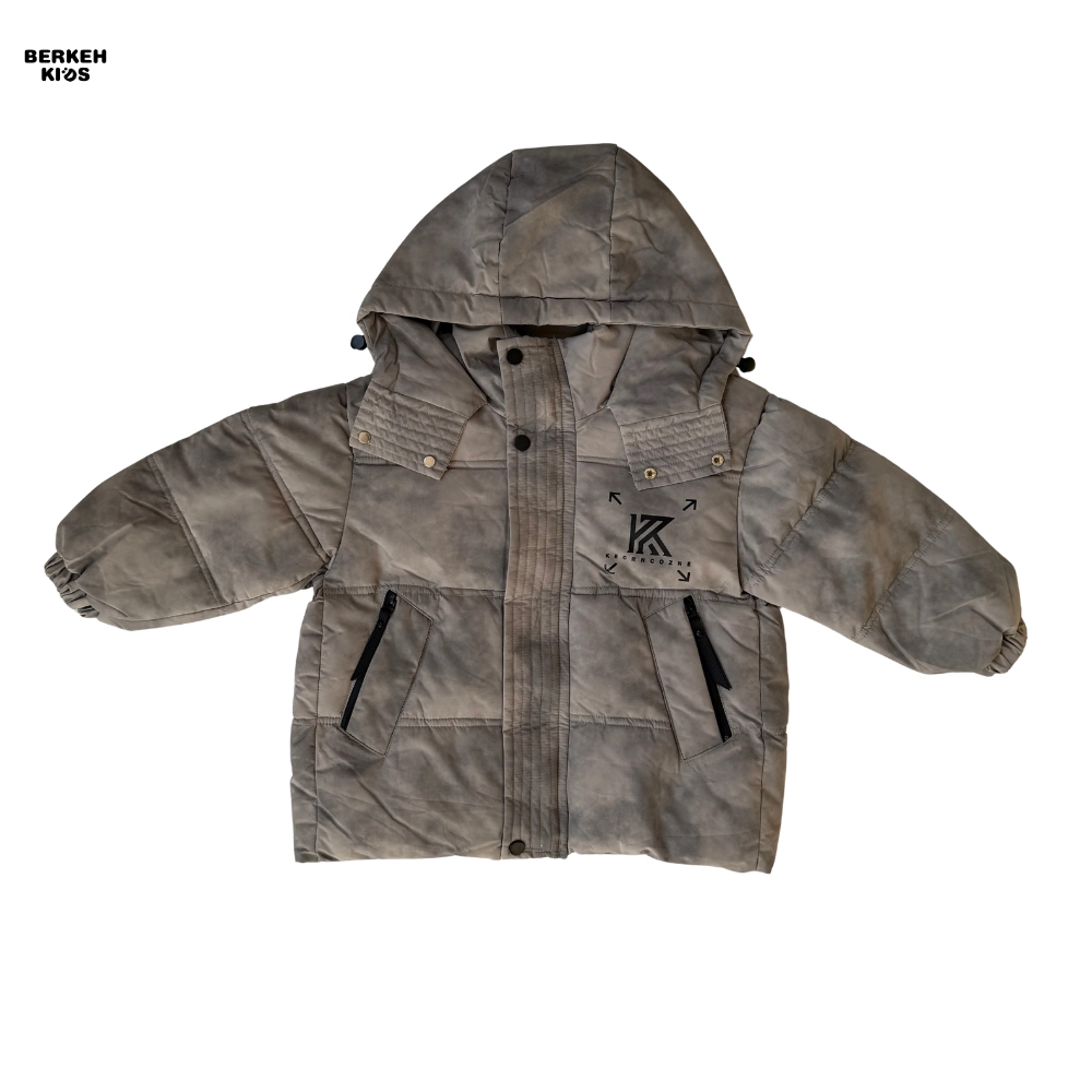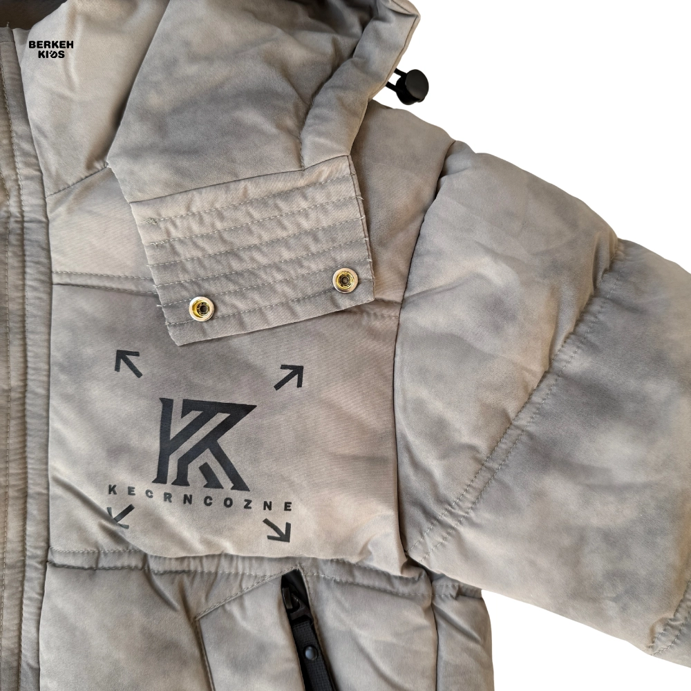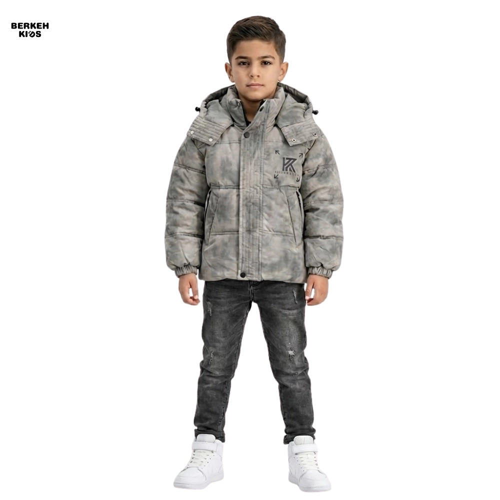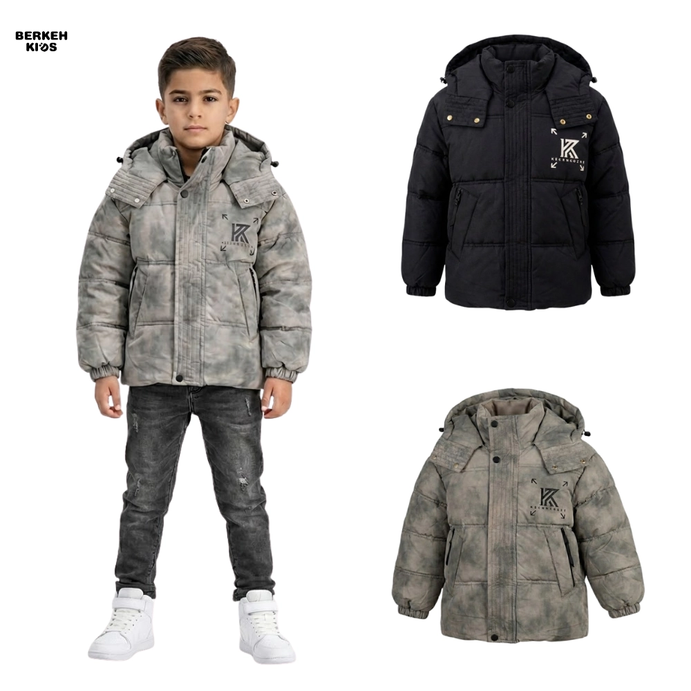 ظاهر لباس برای کودکان امروزی اهمیت زیادی دارد. این کاپشن بچگانه پسرانه در دو سبک متفاوت طراحی شده است تا سلیقههای مختلف را پوشش دهد. ۱. مدل ابروبادی (سنگی): این طرح با رنگبندی طوسی و خاکستری و بافتی شبیه به سنگ، ظاهری بسیار مدرن و چرکمرد (دیر کثیفشو) دارد که برای پسران پرجنبوجوش عالی است. ۲. مدل نوشته انگلیسی: برای علاقهمندان به سبکهای مینیمال و خیابانی، مدل مشکی با تایپوگرافیهای انگلیسی در پشت و طرح لوگوی “K” روی سینه، استایلی جذاب و اسپرت میسازد.