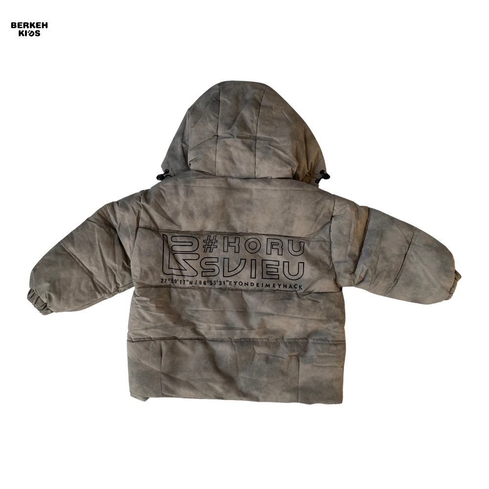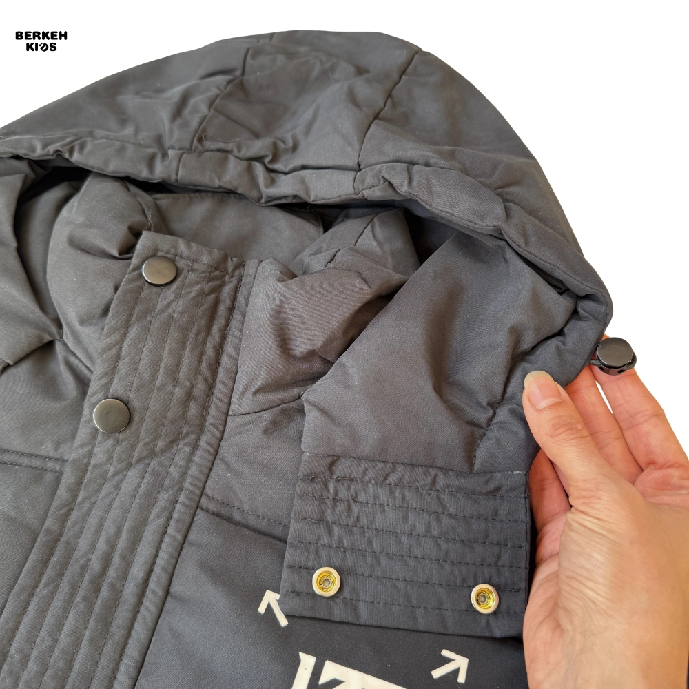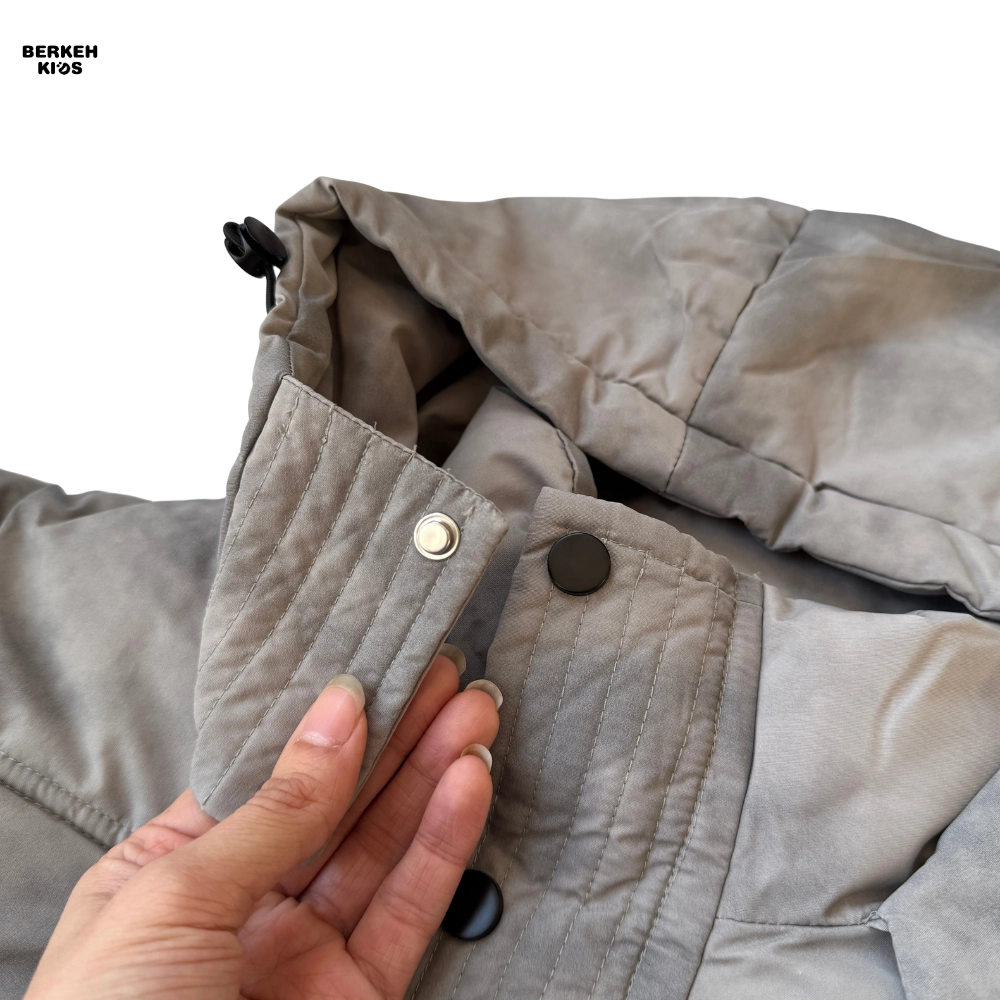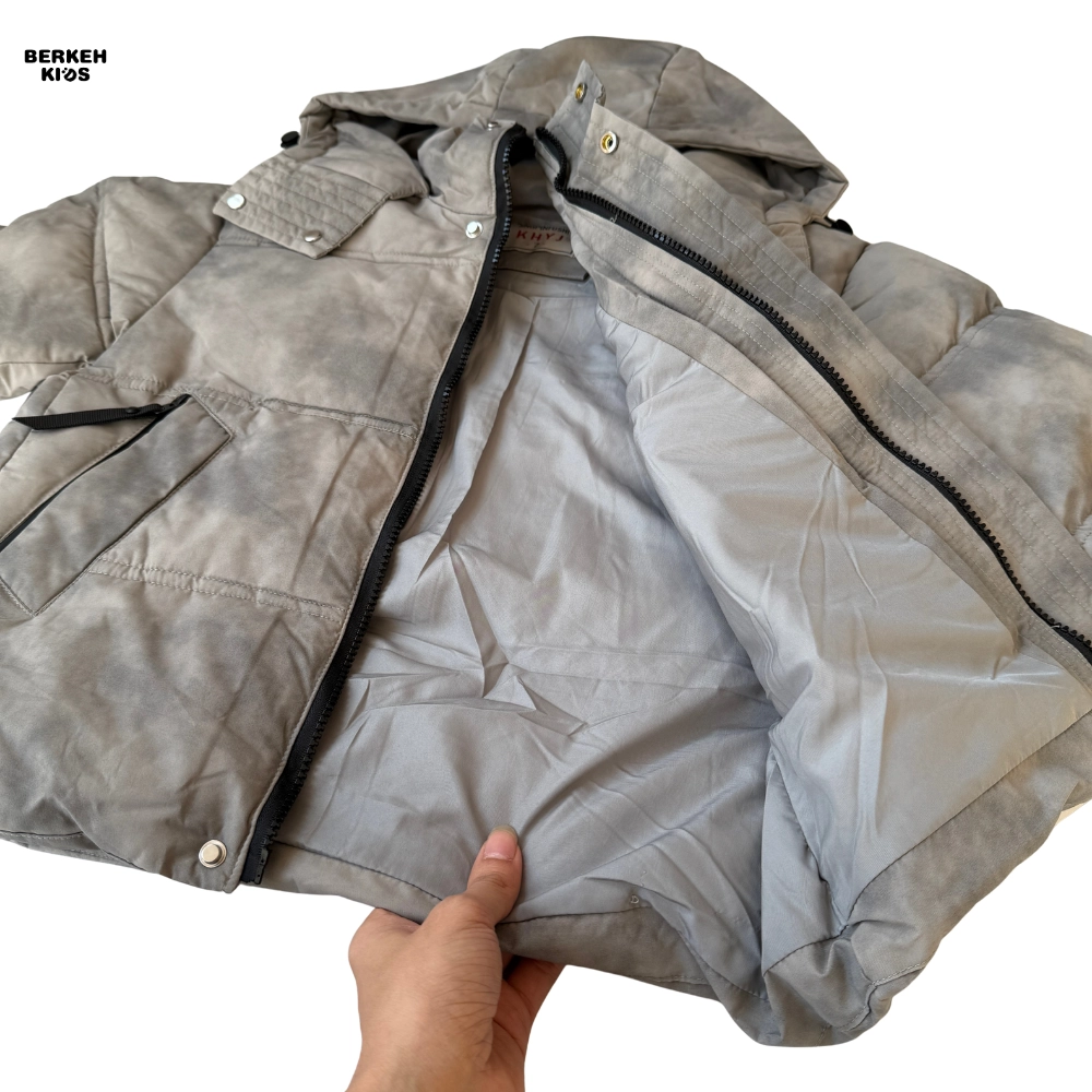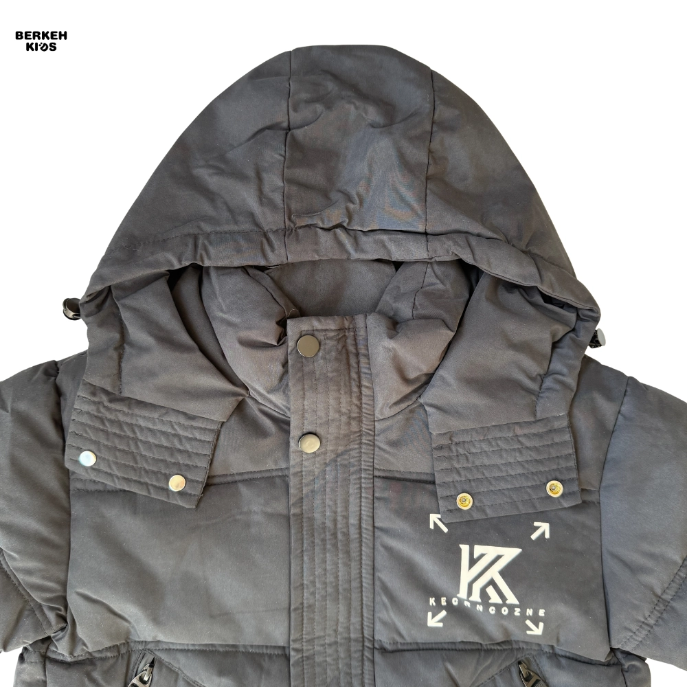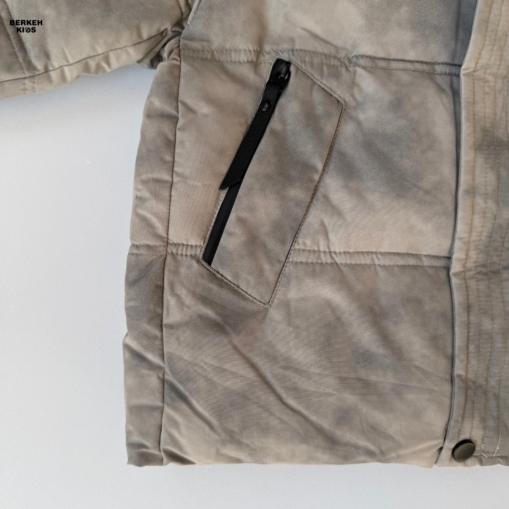 ظاهر لباس برای کودکان امروزی اهمیت زیادی دارد. این کاپشن بچگانه پسرانه در دو سبک متفاوت طراحی شده است تا سلیقههای مختلف را پوشش دهد. ۱. مدل ابروبادی (سنگی): این طرح با رنگبندی طوسی و خاکستری و بافتی شبیه به سنگ، ظاهری بسیار مدرن و چرکمرد (دیر کثیفشو) دارد که برای پسران پرجنبوجوش عالی است. ۲. مدل نوشته انگلیسی: برای علاقهمندان به سبکهای مینیمال و خیابانی، مدل مشکی با تایپوگرافیهای انگلیسی در پشت و طرح لوگوی “K” روی سینه، استایلی جذاب و اسپرت میسازد.