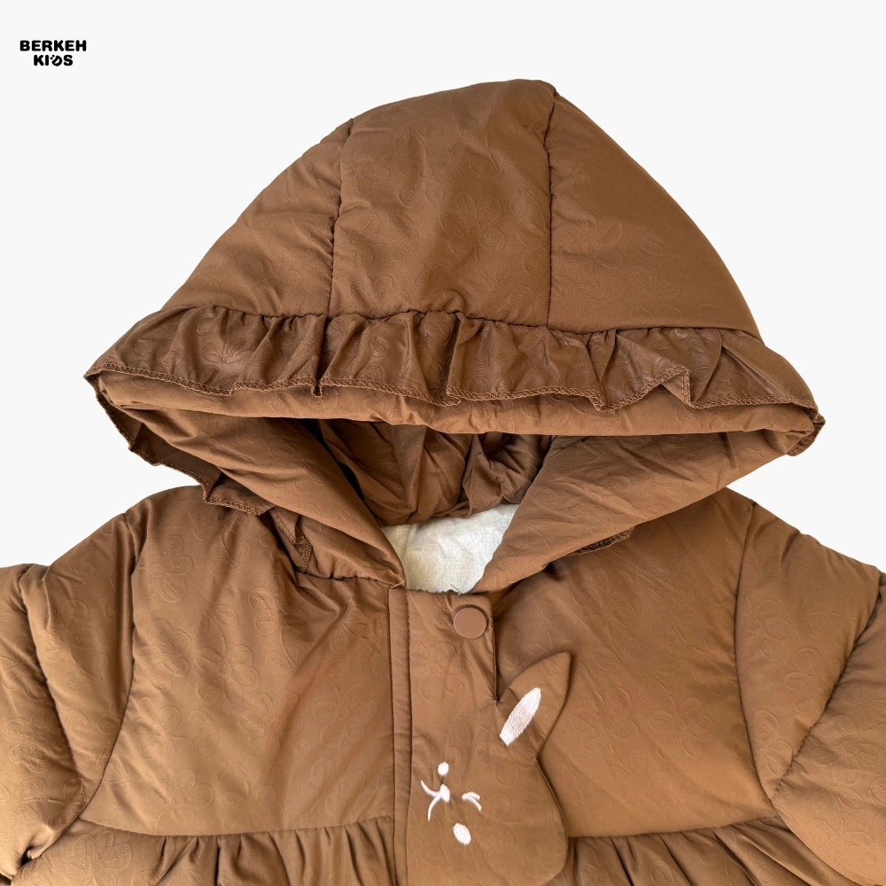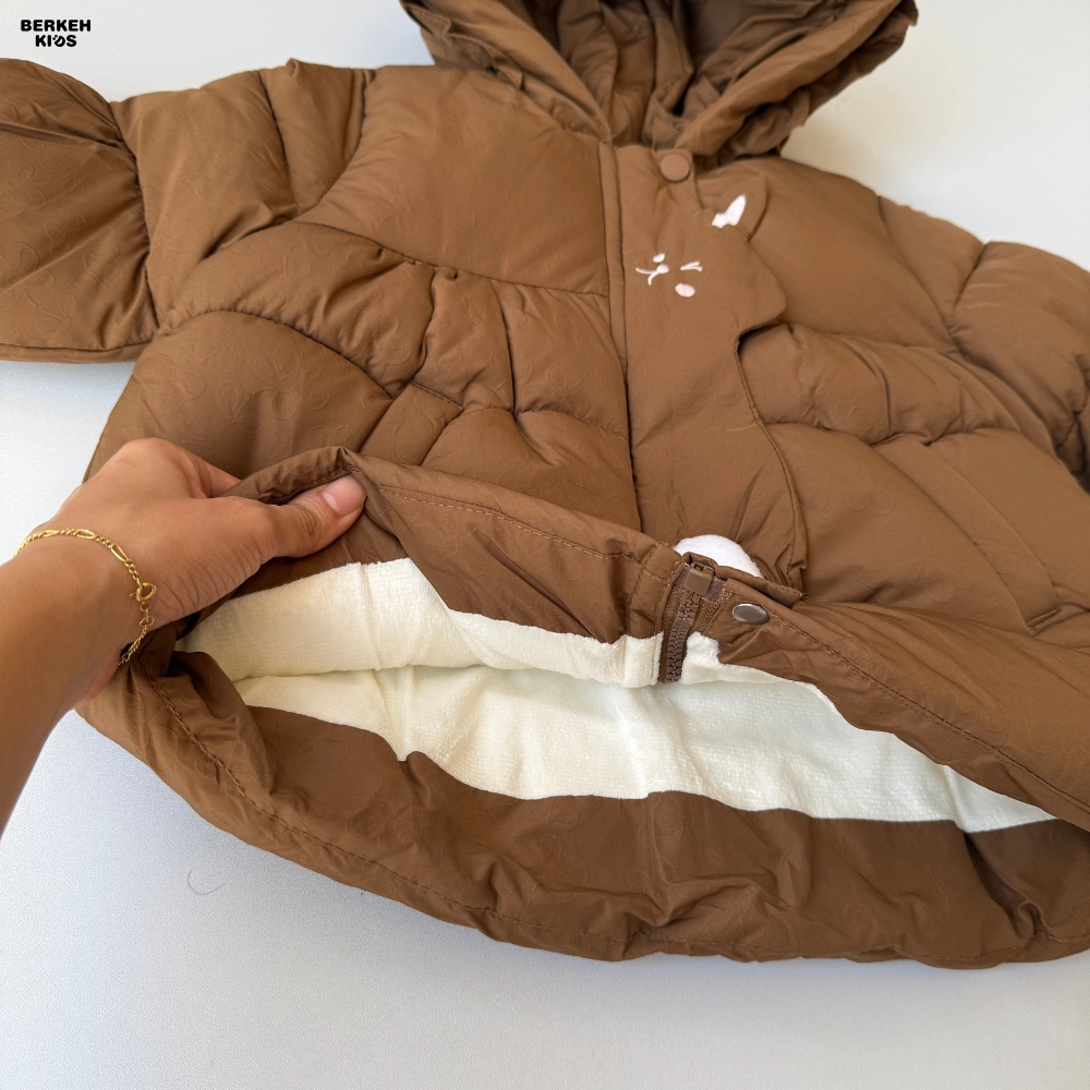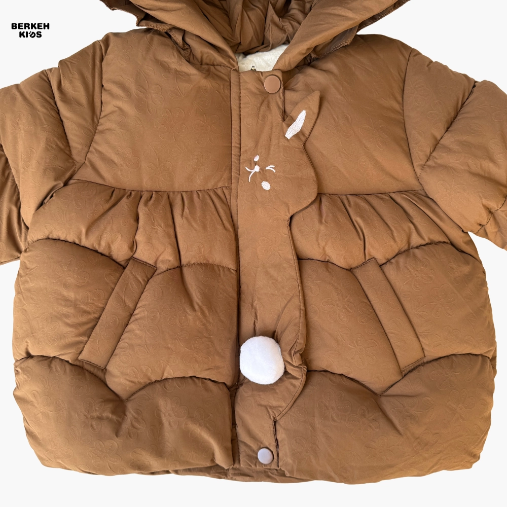 طراحی این کاپشن بسیار هوشمندانه است؛ فرم پفکی جذاب، دوخت موج‌دار، کلاه بزرگ و خوش‌فرم، و طرح فانتزی خرگوش که روی جلوی کاپشن دیده می‌شود، آن را به یک کاپشن فانتزی دخترانه بسیار محبوب تبدیل کرده است. وجود پاپیون زیبا در پشت کاپشن هم ظاهر آن را خاص‌تر کرده و باعث شده این مدل در میان کاپشن دخترانه جدید امسال جایگاه ویژه‌ای داشته باشد. این کاپشن دقیقاً همان چیزی است که اگر در گوگل کلماتی مثل کاپشن شیک یا کاپشن خاص را جستجو کنید، انتظار دارید ببینید.