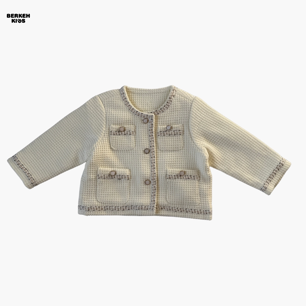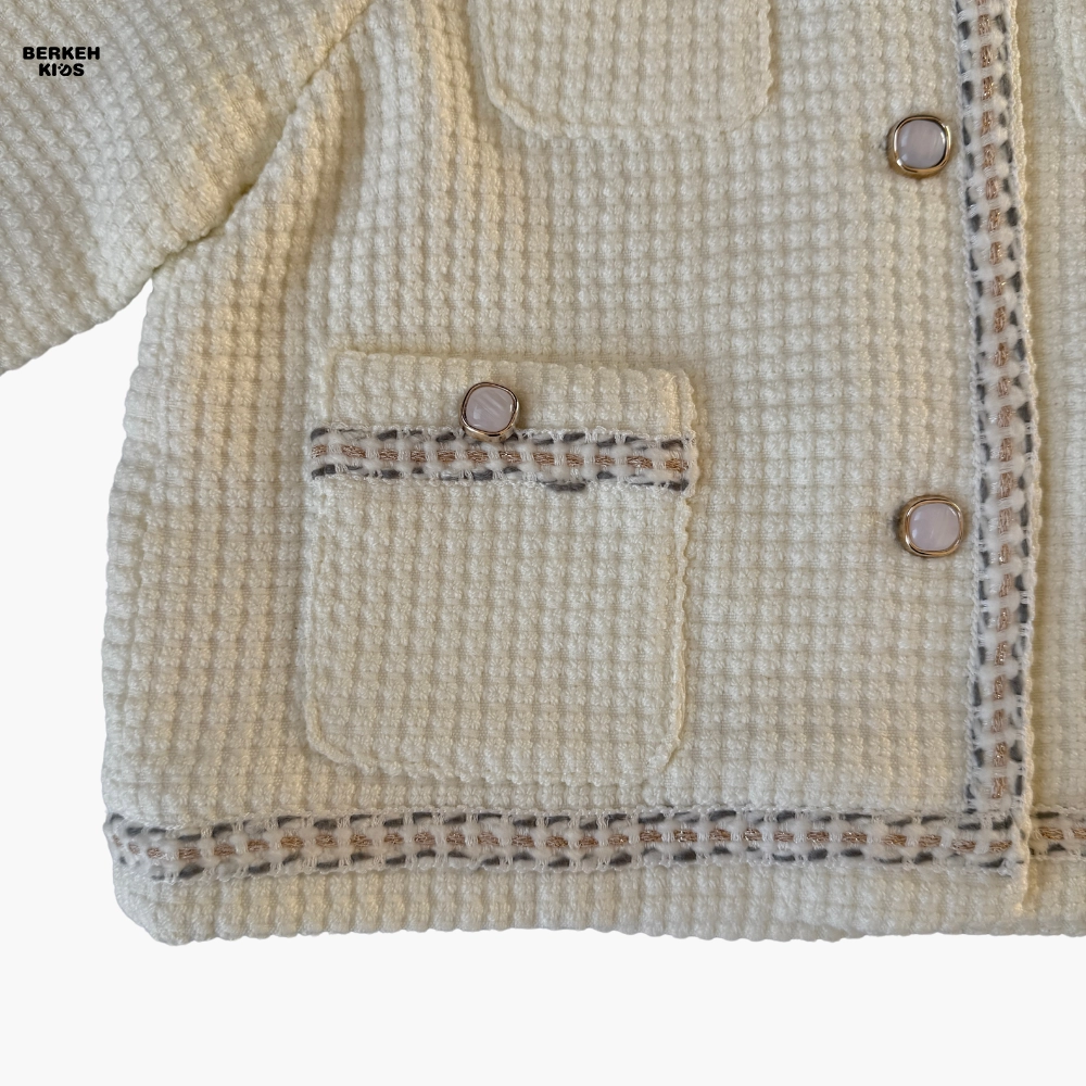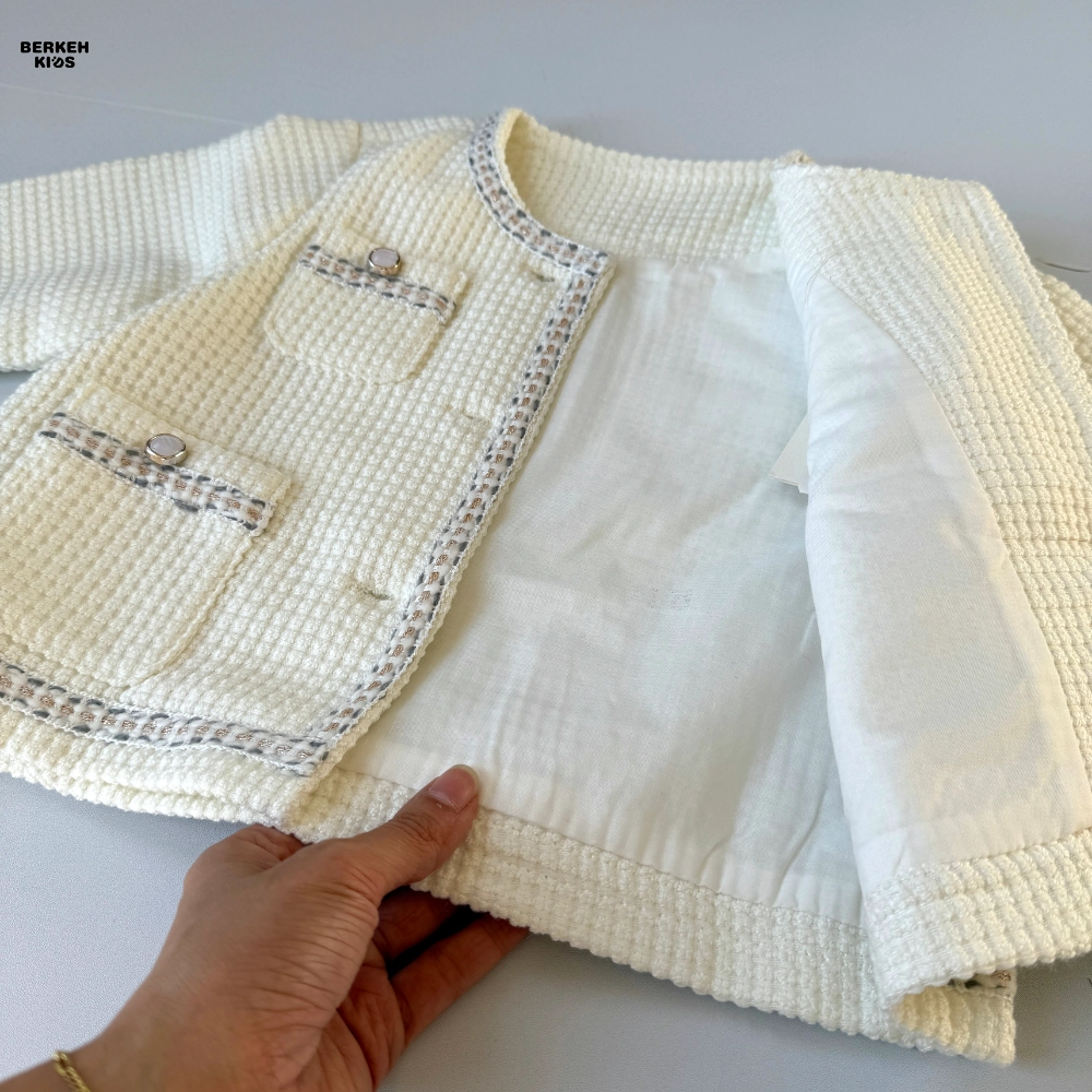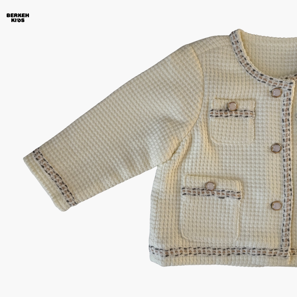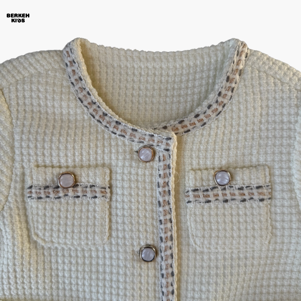 از نظر کیفیت ساخت، به دلیل وارداتی بودن، دوخت، تمیزی لبه‌ها و انتخاب پارچه‌ها کاملاً استاندارد است. الگوی کت روی تن کاملاً مرتب می‌نشیند و فرمی منظم ایجاد می‌کند که در عکس‌برداری و استایل‌های رسمی، جلوه‌ای زیبا به ظاهر کودک می‌دهد. رنگ کرمی این مدل نیز باعث شده که به‌راحتی با انواع شلوار جین، لگ گرم، دامن‌های دخترانه و کفش‌های اسپرت یا مجلسی ست شود.
