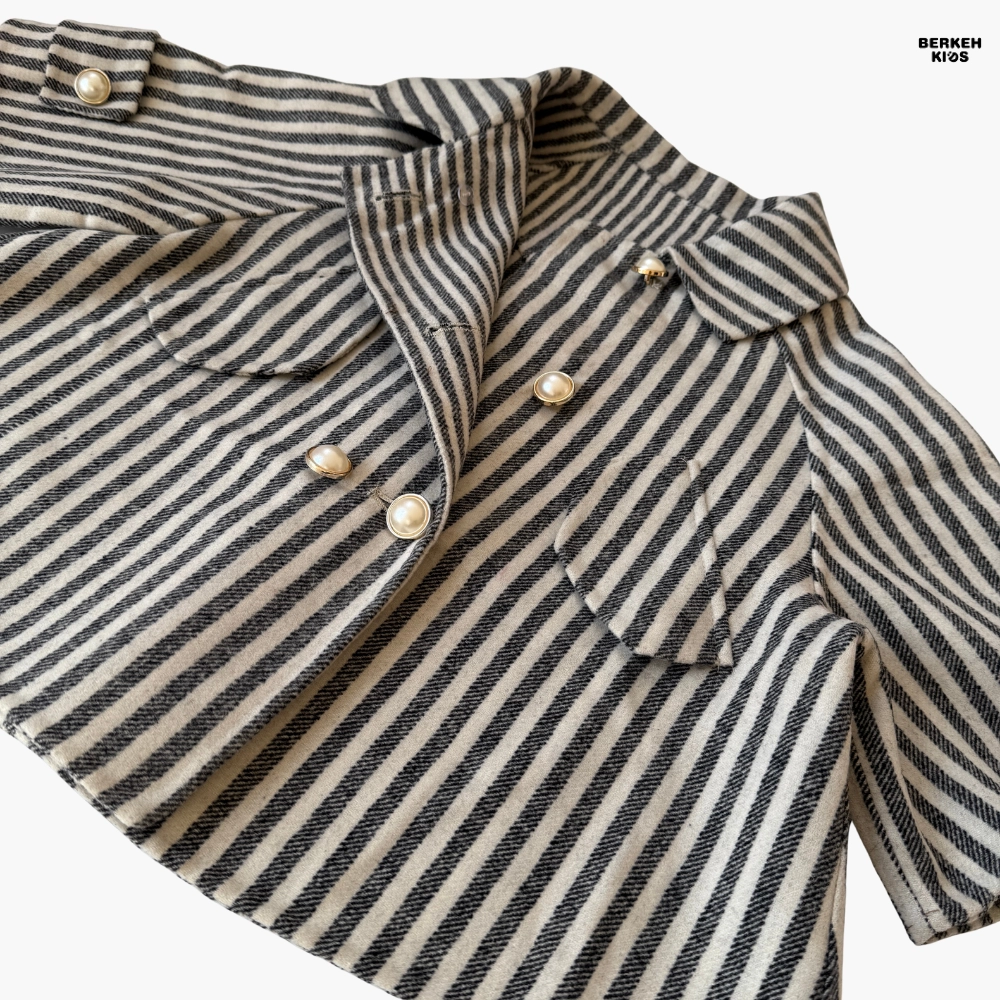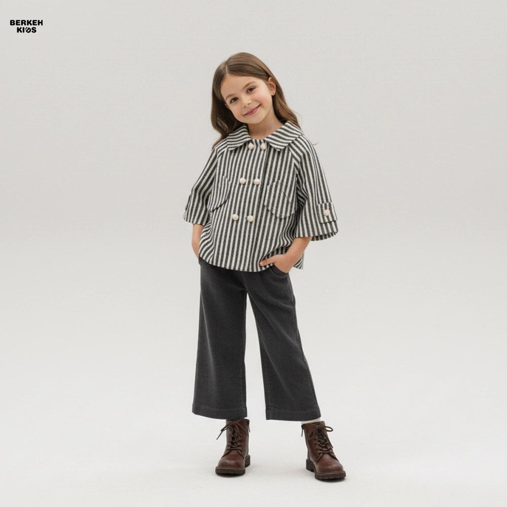 این کت دخترانه با رنگ طوسی و خطوط مشکی، بهراحتی با شلوار پارچهای، دامن یا نیمبوت پاییزی ست میشود و استایلی شیک و دلنشین برای مهمانی، گردش و استفاده روزمره میسازد. جنس پارچه وارداتی بوده و بدون آبرفت است؛ بنابراین پس از شستوشو فرم خود را حفظ میکند.
